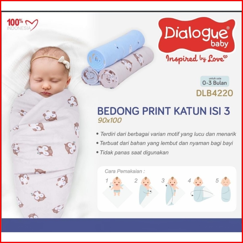 3 Pcs Bedong Soft Cotton Bayi 90x100cm Dialogue Baby Blanket Gift Set Newborn