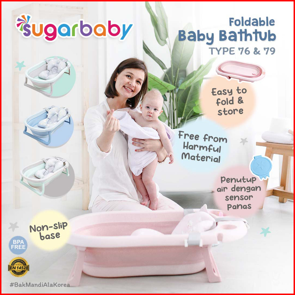 Sugar Baby Bak Mandi Bayi Foldable Baby Bathtub Dengan Sensor Panas Bantal Mandi Bayi Peralatan Mandi Tempat Mandi Bayi