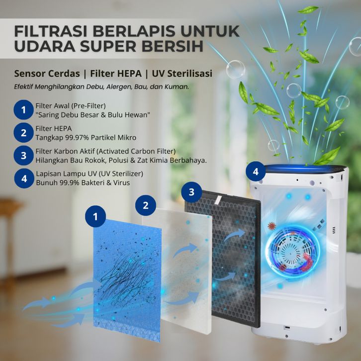 Air Purifier Ruangan Terbaik dengan Hepa Filter Menghilangkan Bau Tak Sedap Anti Debu Anti Polusi Anti Virus PM2.5 Aman