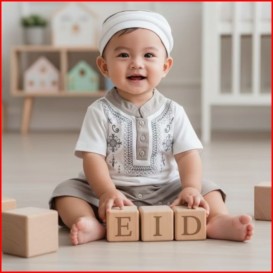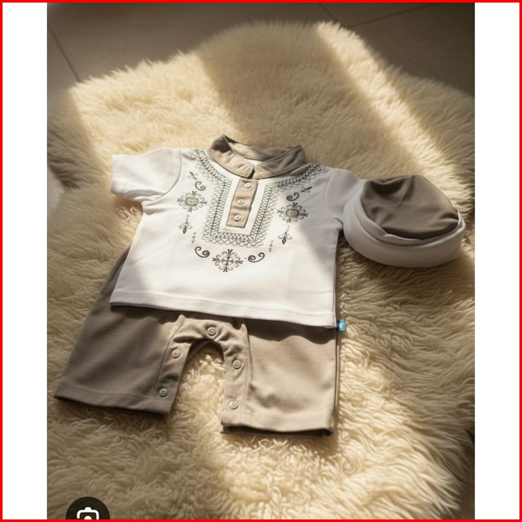 Hokiku Pakaian Muslim Baju Koko Premium Lebaran Aqiqah Bayi Laki-laki Romper Bayi