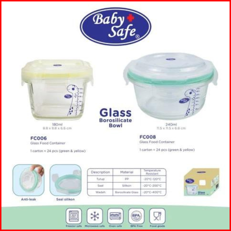 Baby Safe Food Container Wadah Kotak Mpasi Bayi Tempat Makan Bayi Fc002 Fc003 Fc006 Fc008 Fc07 Glass Container Kaca