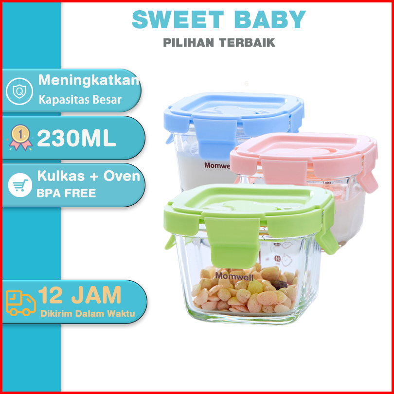 Sweetbaby Tempat Mpasi Kaca 230ml Baby Food Container Wadah Mpasi Kaca Penyimpanan Mpasi Glass Bpa Free Gfb03