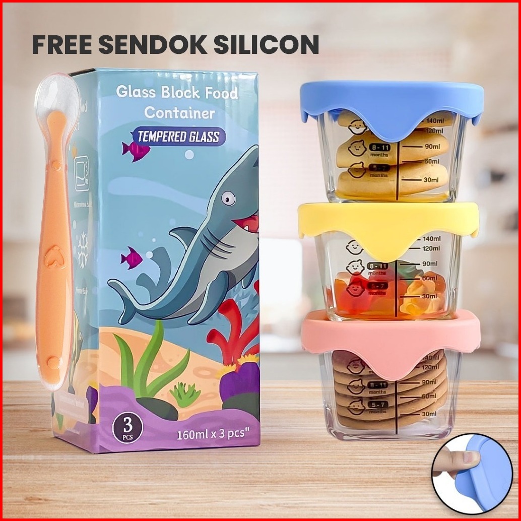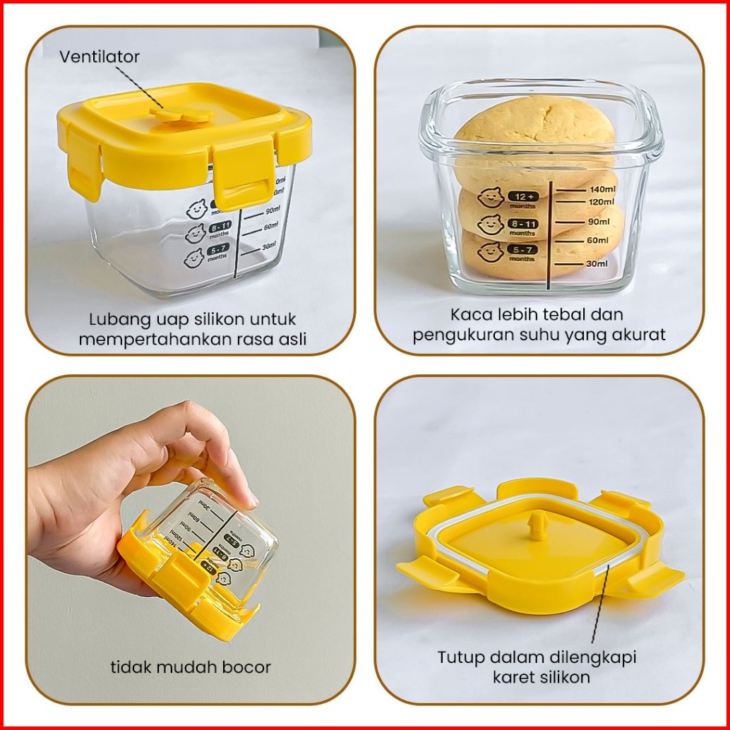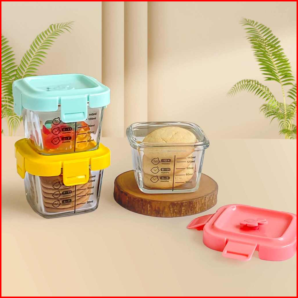 Nexxio Tempat Mpasi Kaca Kotak Makan 3in1 Dan 4in1 Free Sendok Mpasi Kaca Baby Food Container Kedap Udara Kotak Tempat M