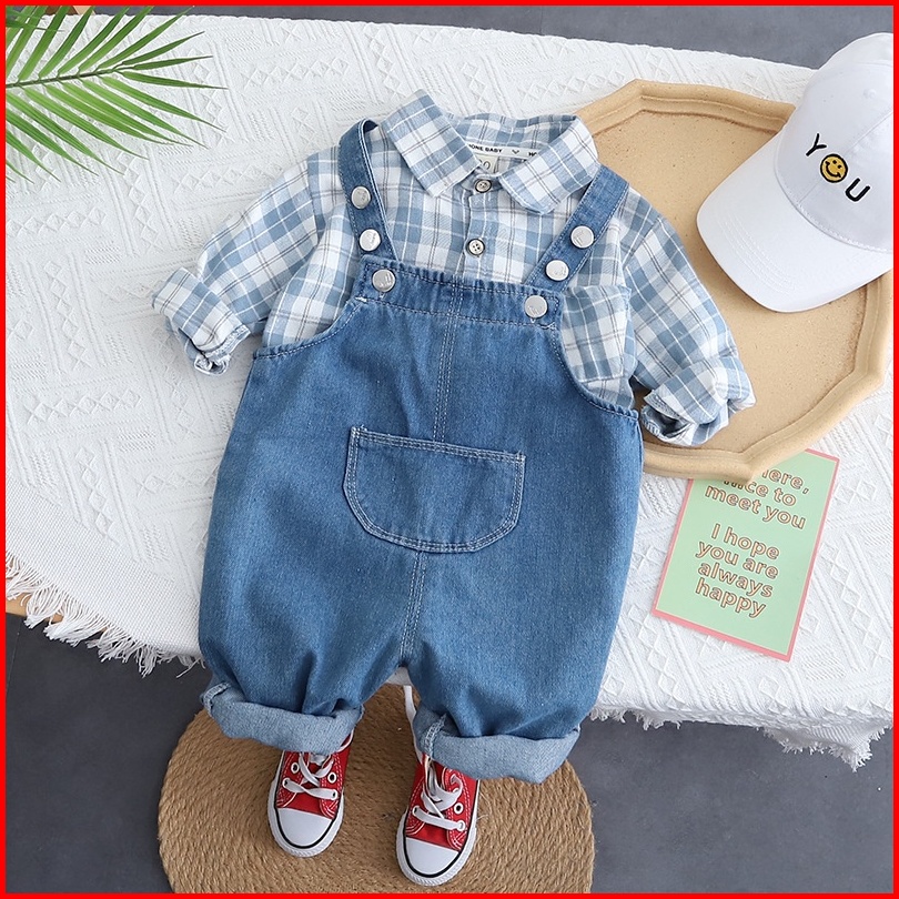 Brownieground Setelan Baju Anak Jumper Kodok Biru Usia 6 Bulan - 5 Tahun Baju Kotak Anak Laki Laki Premium Stp-0541