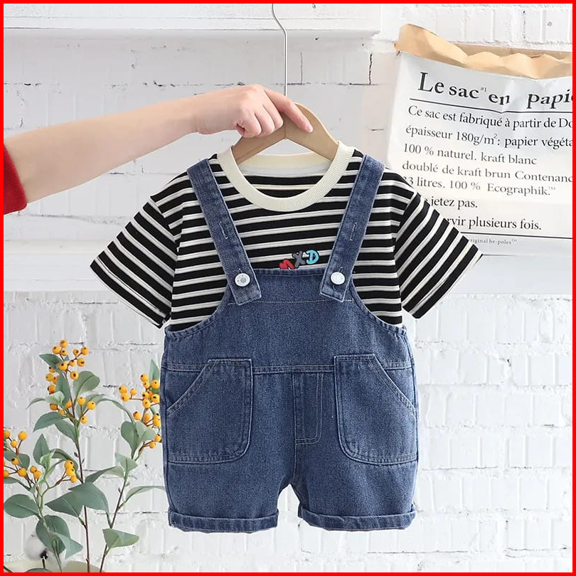 Brownieground Setelan Overall Anak Laki Laki Motif Salur Hitam Putih Beko Usia 6 Bulan - 5 Tahun