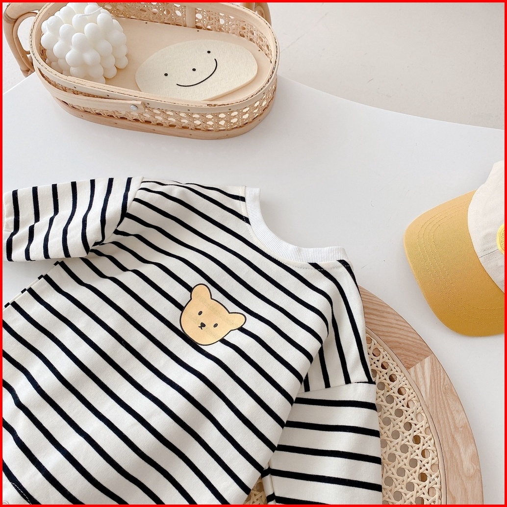 Brownieground Jumper Anak Anak Ala Korea Usia 3-18 Bulan Motif Salur Bear Lengan Panjang Jmp-0240