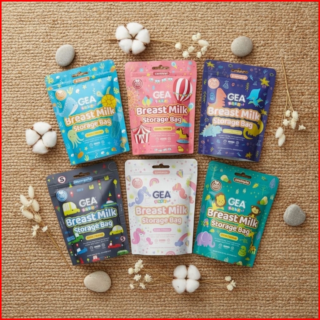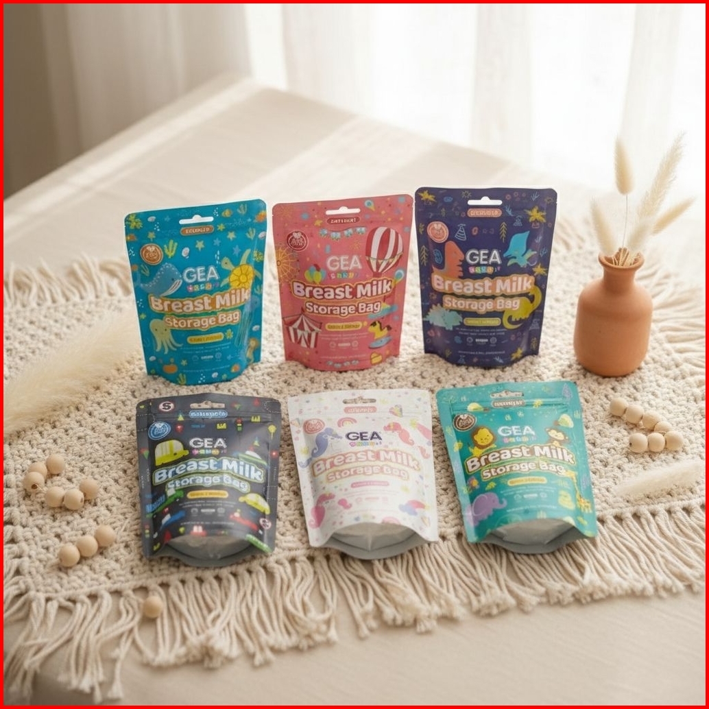 Kantong Asi Gea Crown Dengan Sensor Panas Breastmilk Storage New Design Pattern Zoo Fun Series