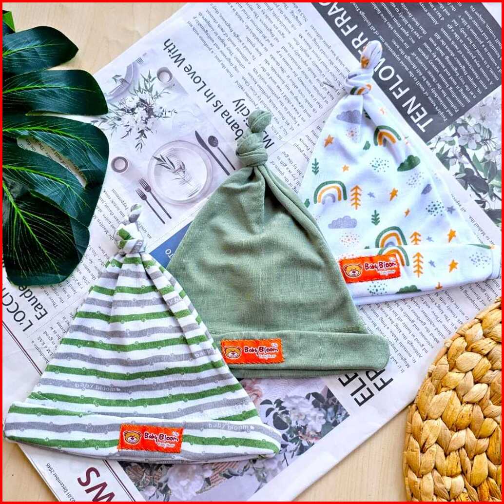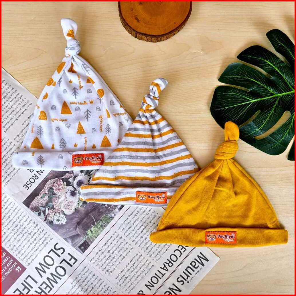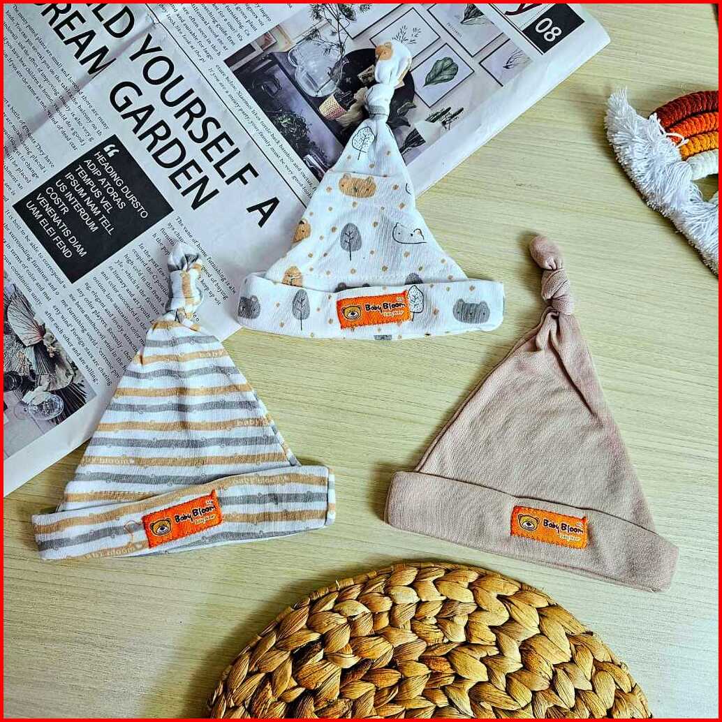 Baby Bloom - 3 Pcs Topi Kupluk Bayi Baru Lahir Topi Bayi 0-3 Bulan Serian Topi Tali Bayi