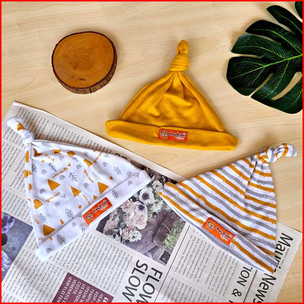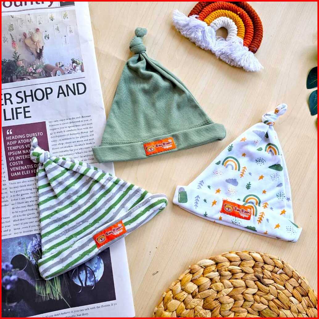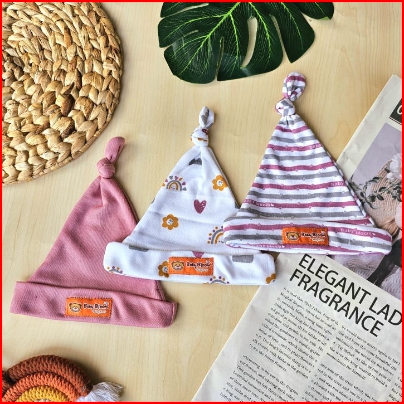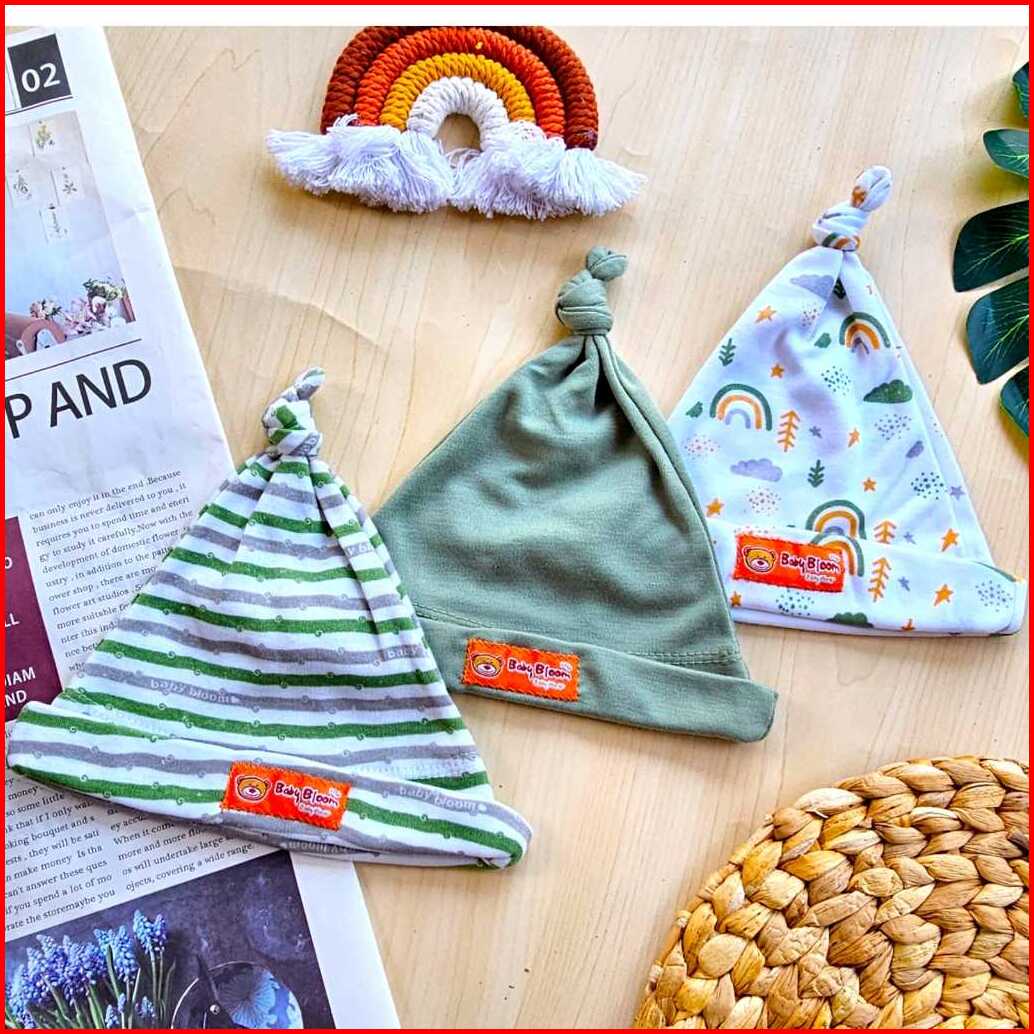 Baby Bloom - 3 Pcs Topi Kupluk Bayi Baru Lahir Topi Bayi 0-3 Bulan Serian Topi Tali Bayi
