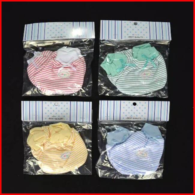 Miyo 1 Set Sarung Tangan Kaos Kaki Bayi Baby Karet Salur 0-3m Perlengkapan Bayi Baru Lahir