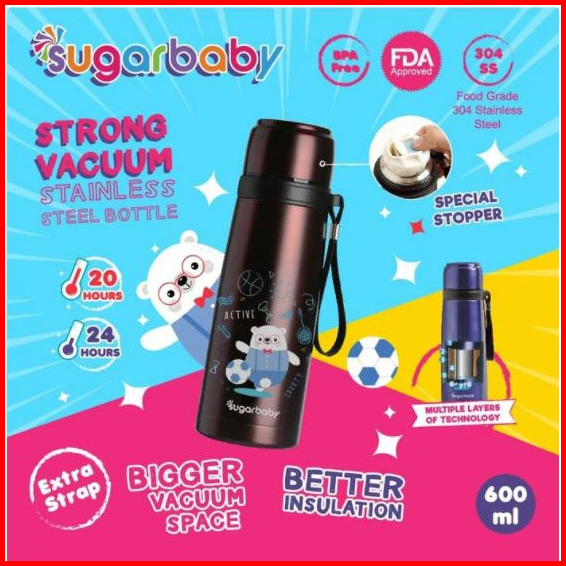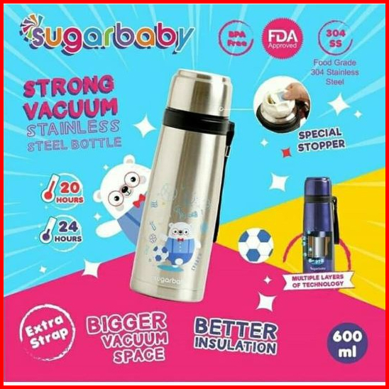 Sugar Baby Strong Vacuum Stainless Steel Bottle 600 Ml Termos Panas Tahan Lama Ukuran Besar