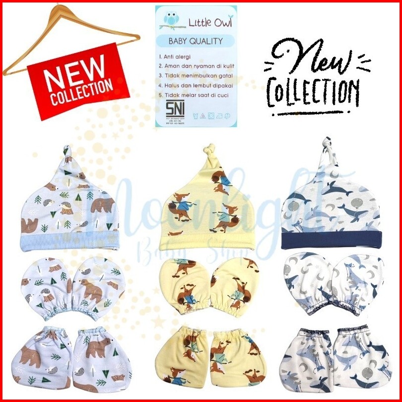 Sarung Tangan Kaki Topi Bayi Little Owl Perlengkapan Bayi Newborn
