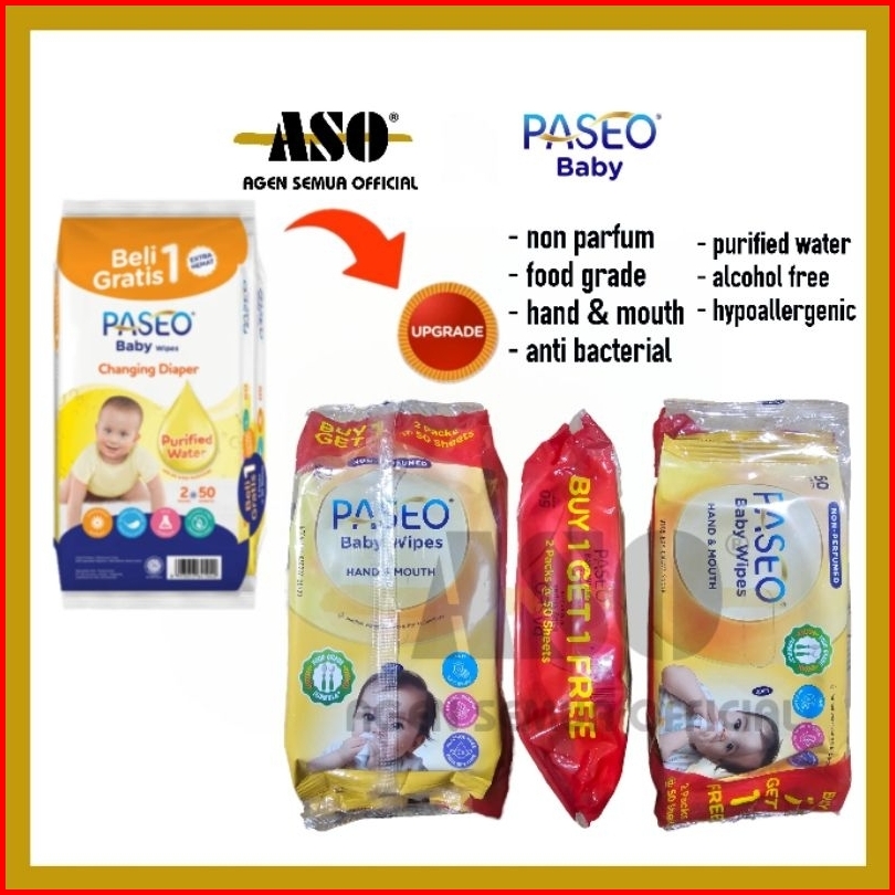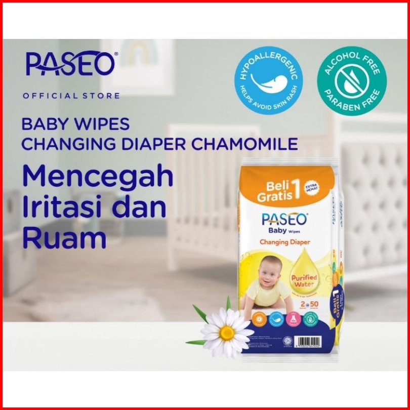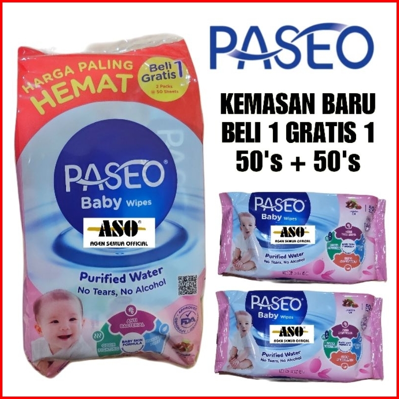 Tissue Tisu Basah Paseo Bebas Alkohol Baby Wipes 50 Sheets Promo Beli 1 Gratis 1 Promo