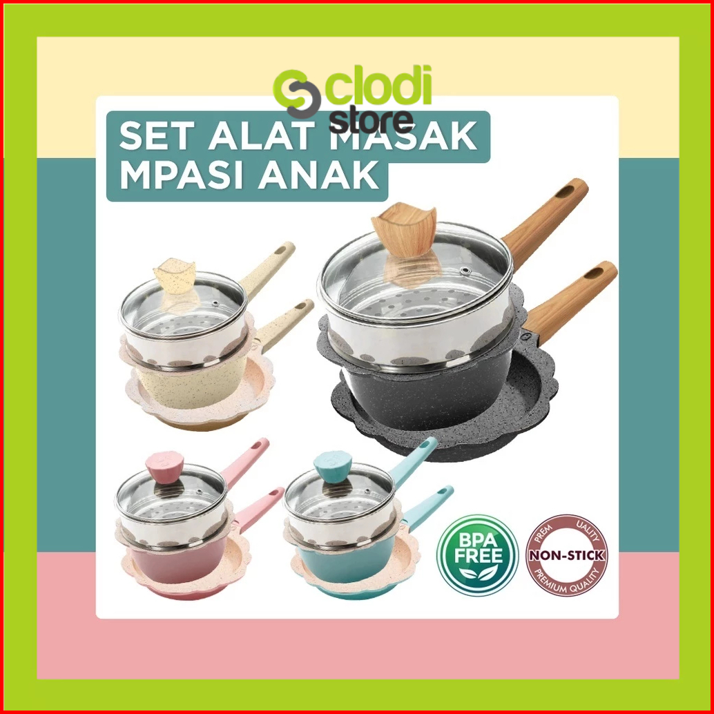 Panci Mpasi Bayi Set 4pc Sakura Flower Cookware Set Peralatan Dapur Mpasi Anak Baby Pan Health Food Grade Aman Untuk Mpa