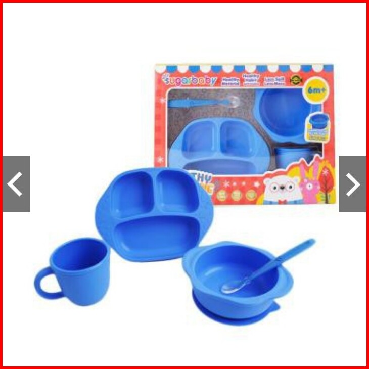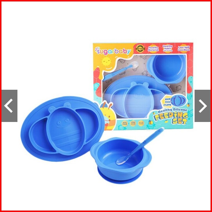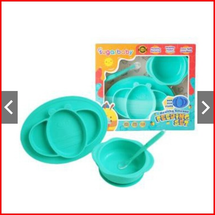 Sugar Baby Healty Silicone Feeding Set Perlengkapan Makan Bayi Isi 3pcs Dan Isi 4pcs 6m Sugarbaby
