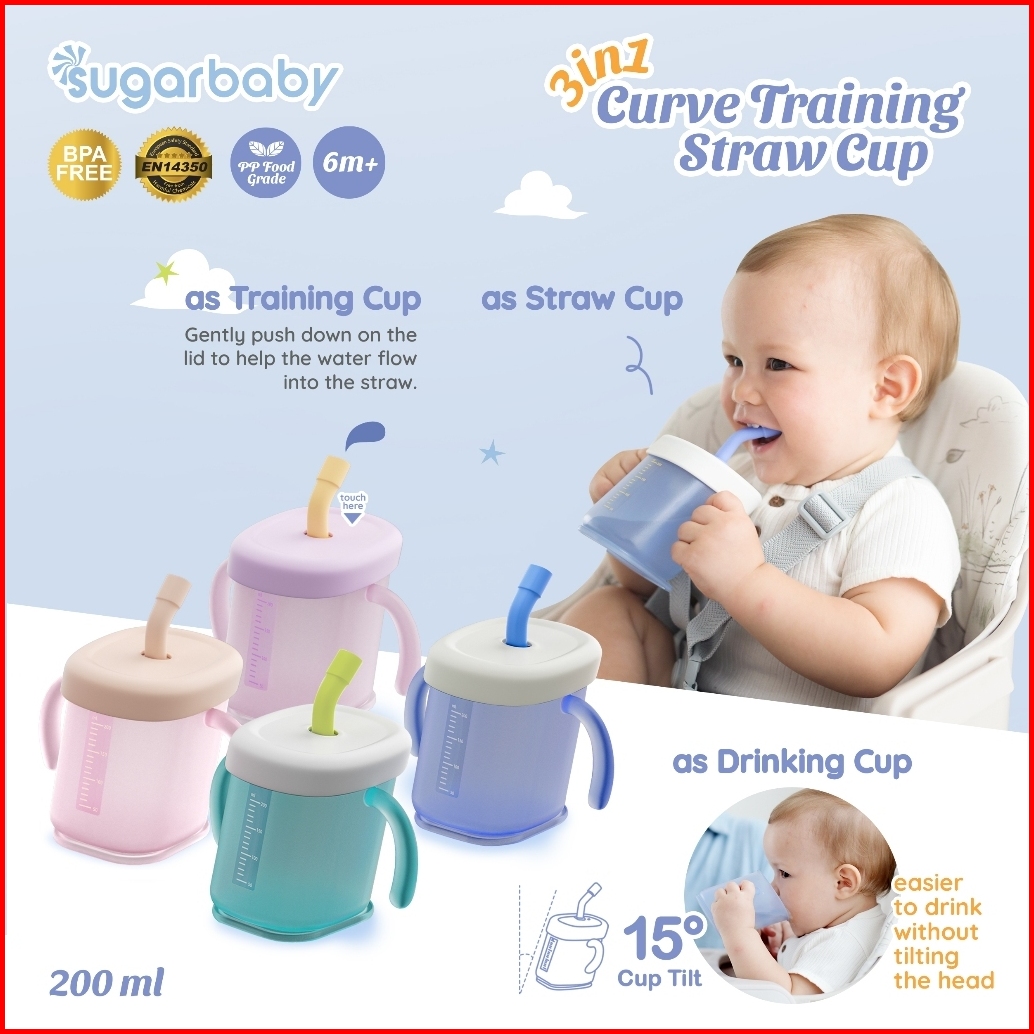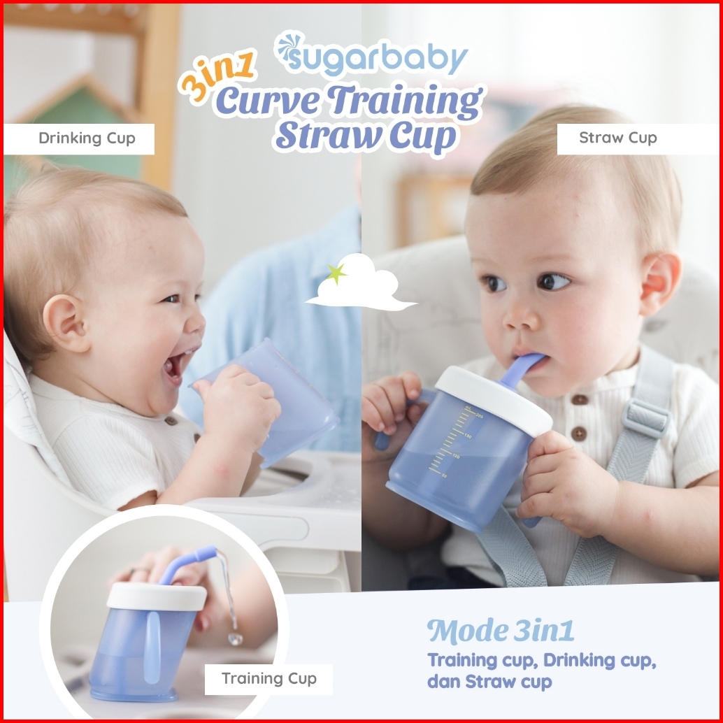 Sugarbaby 3 In 1 Curve Training Straw Cup Gelas Mpasi Bayi Gelas Bayi Anti Tumpah Bocor Training Cup Bpa Free
