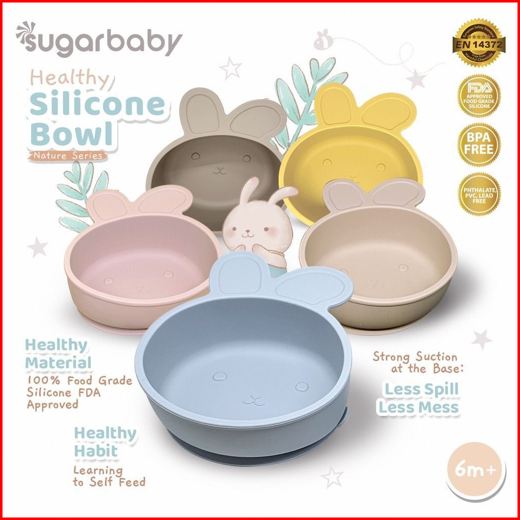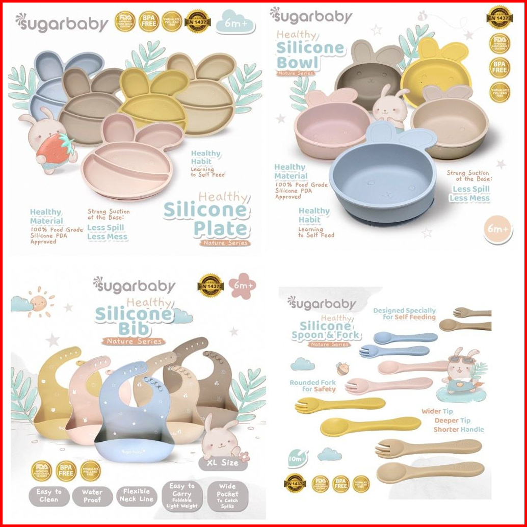 Sugar Baby - Perlengkapan Mpasi Bayi Healthy Silicone Bowl Spoon Fork Silicone Bib Silicone Plate Nature Series
