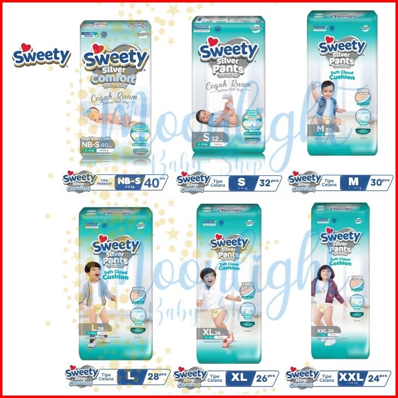 Sweety Silver Soft Cloud Pants 12 Jam Kering Perekat Popok Bayi Perekat Nbs40 S36 M32 L26 Xl24 Xxl22