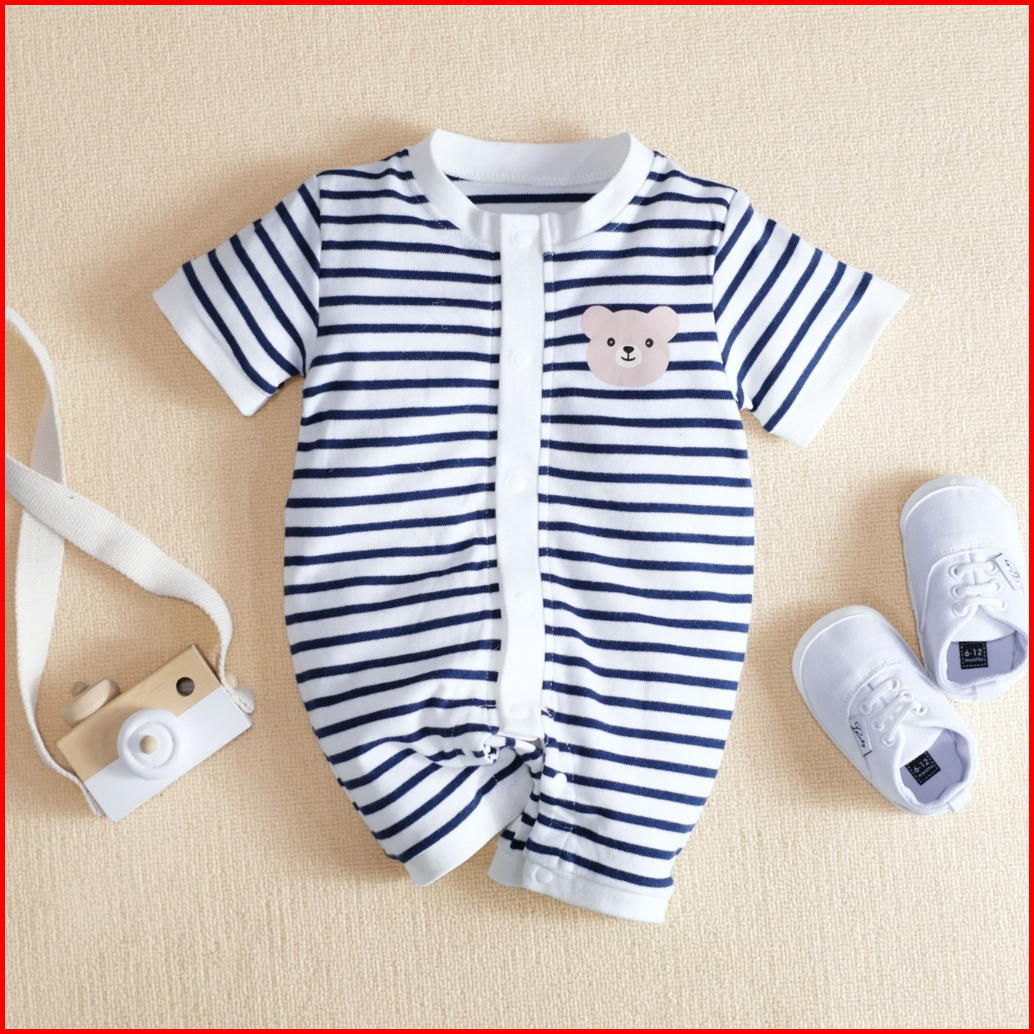 Brownieground Jumper Bayi Lengan Pendek 0-18 Bulan Motif Garis Salur Baju Bayi Laki Laki Korean Style Imut Lucu Jmp-0793