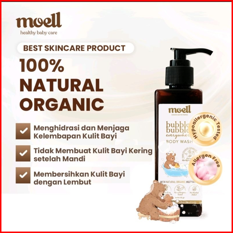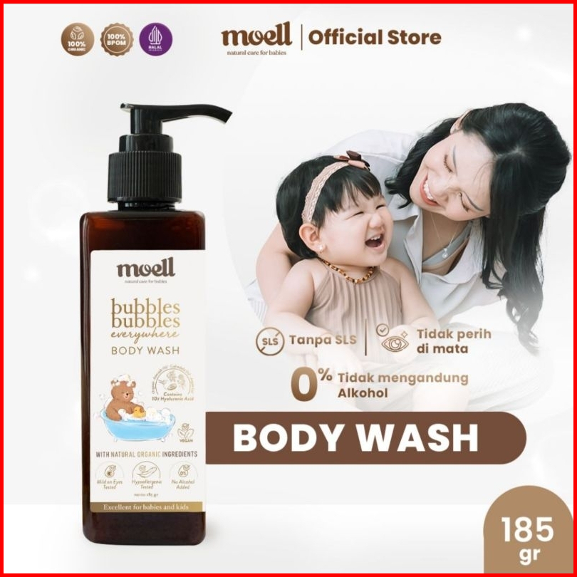 Moell Gentle Body Wash 185gr - Bubbles Bubbles Everywhere Body Wash Sabun Bayi Sls Free - Natural Organic-