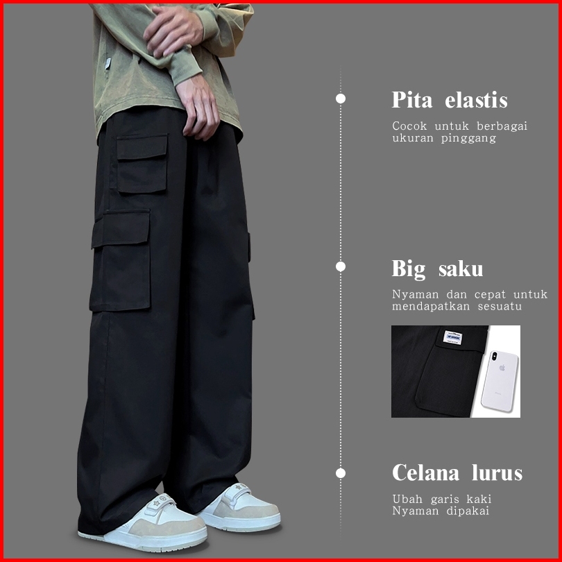 Celana Kargo Pria Original 100 Celana Cargo Panjang Pria Wide Leg M-3xl Korean Style Pria Celana Baggy Pants Pria Celana