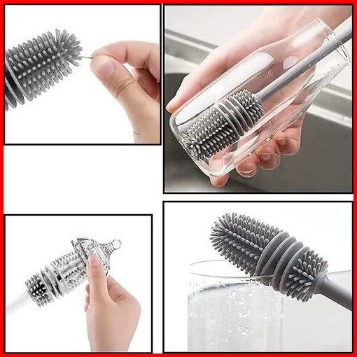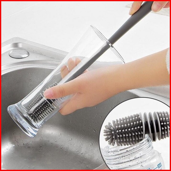Sikat Gagang Panjang Pembersih Botol Susu Gelas Cangkir Bahan Silikon