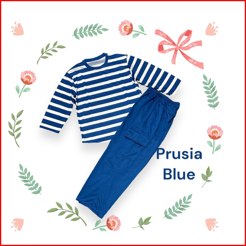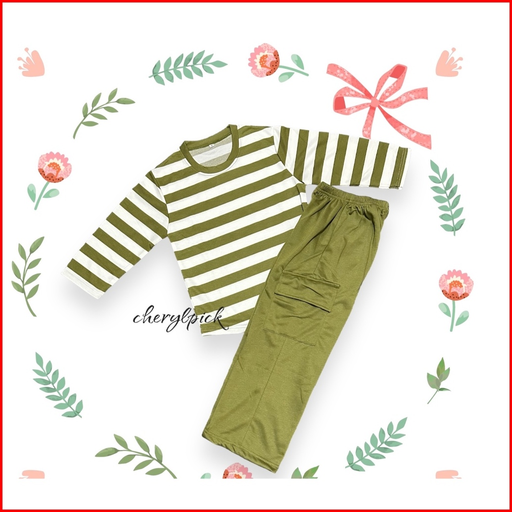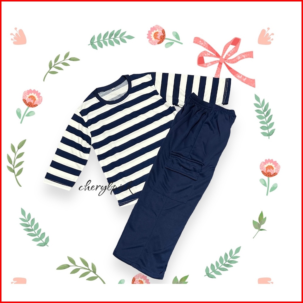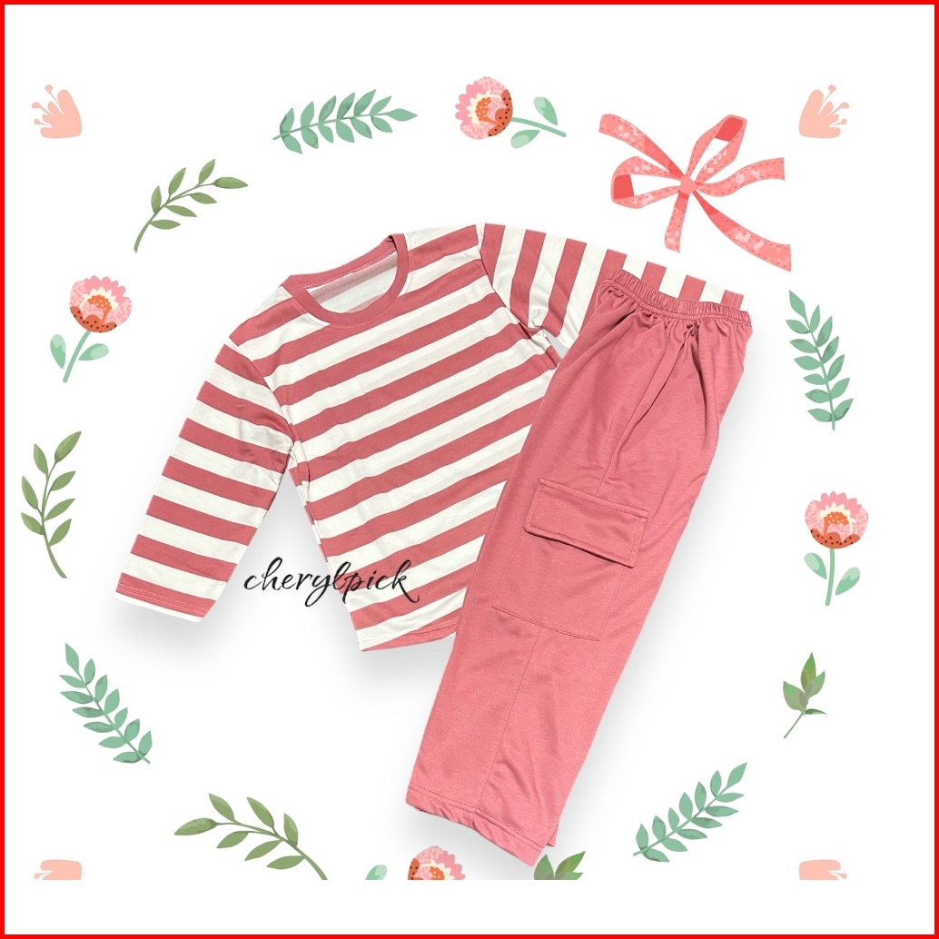 Ligimikids Setelan Kaos Salur Cheryl Dan Celana Cargo