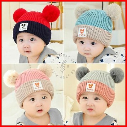 Topi Bayi Rajut Pompom Usia 0-3 Tahun
