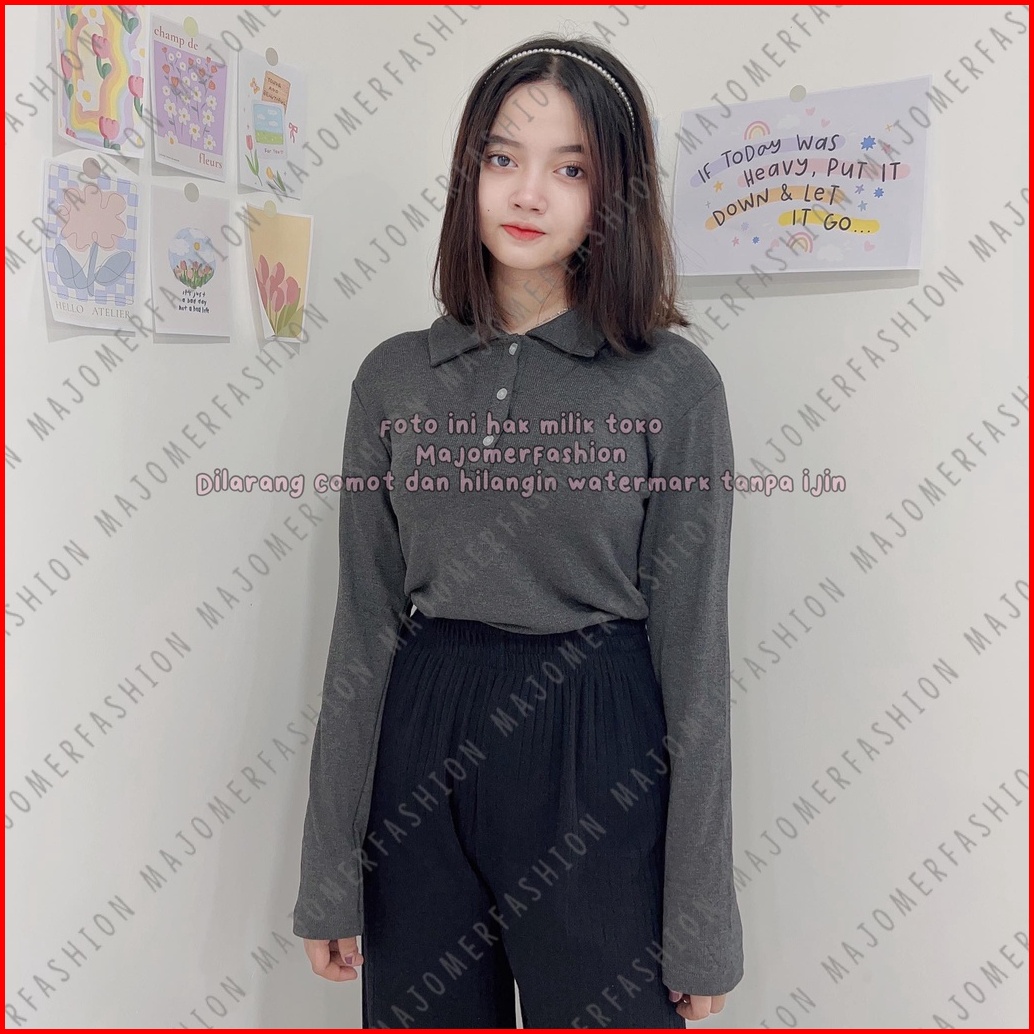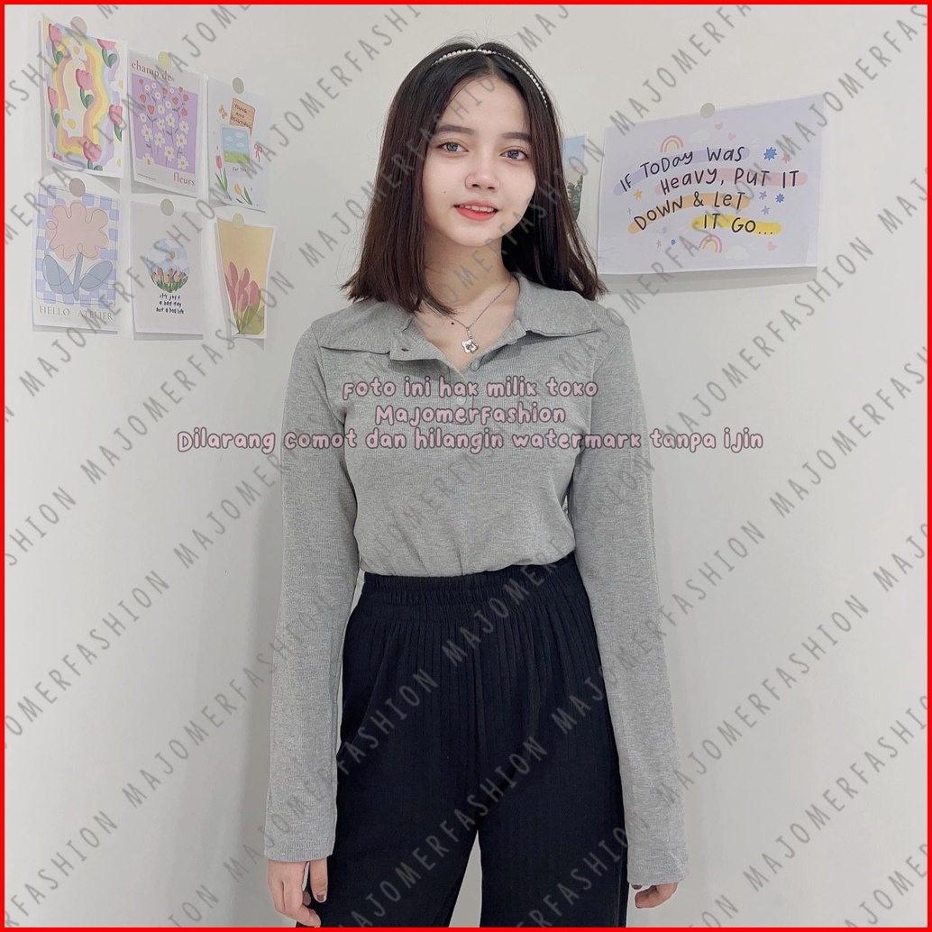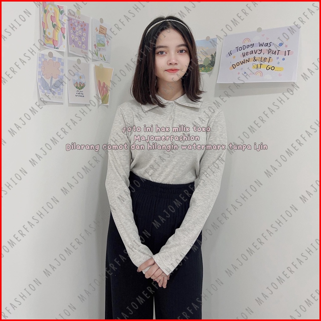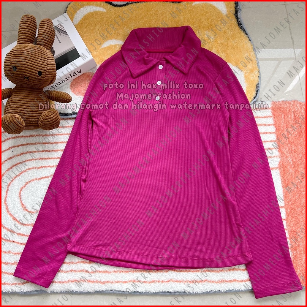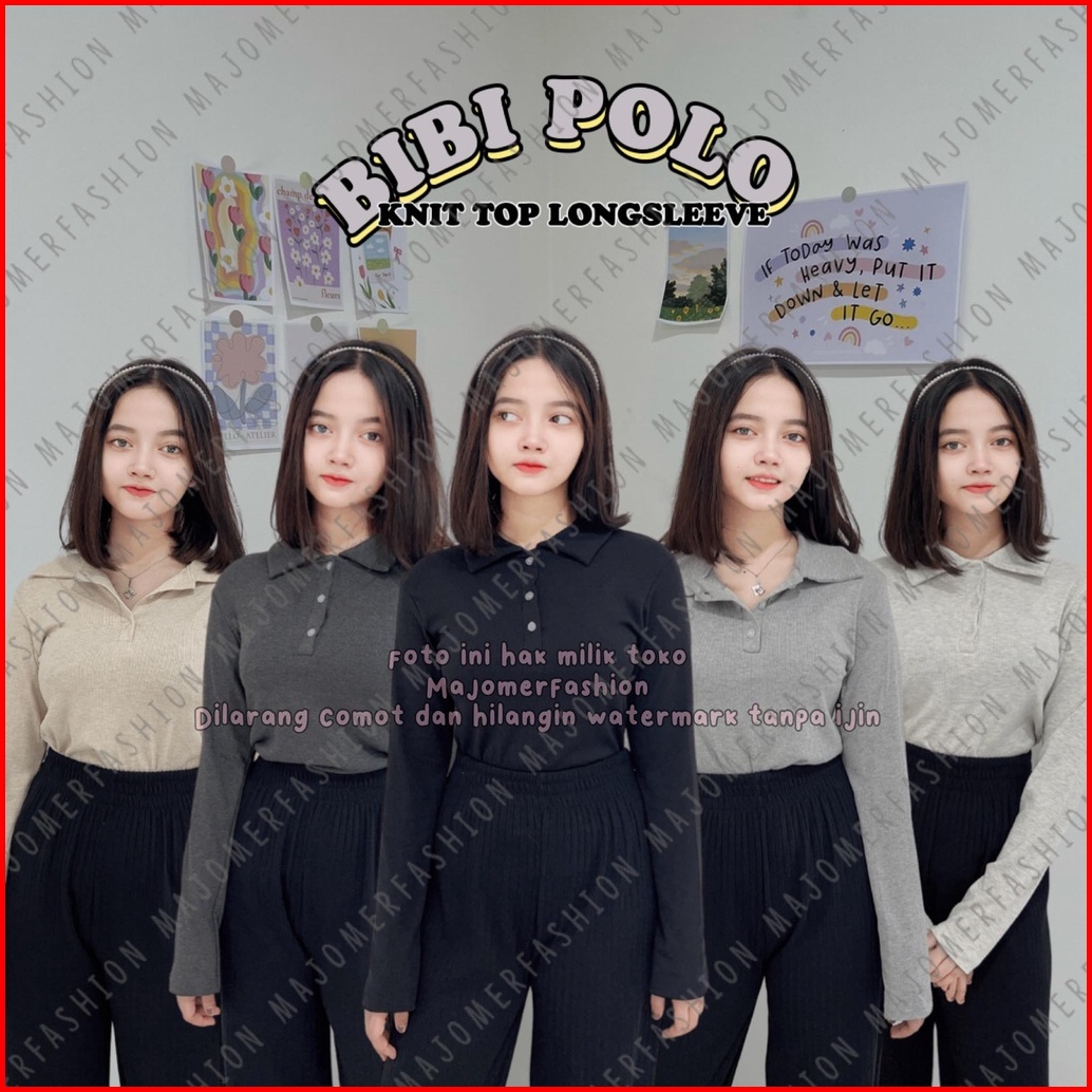 Majomer Bibi Polo Knit Top Longsleeve - Kaos Lengan Panjang Atasan Rib Fit Body