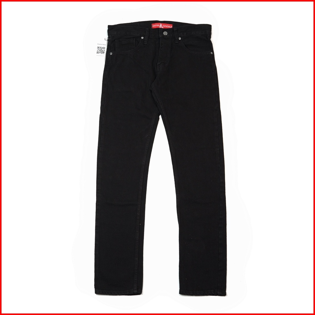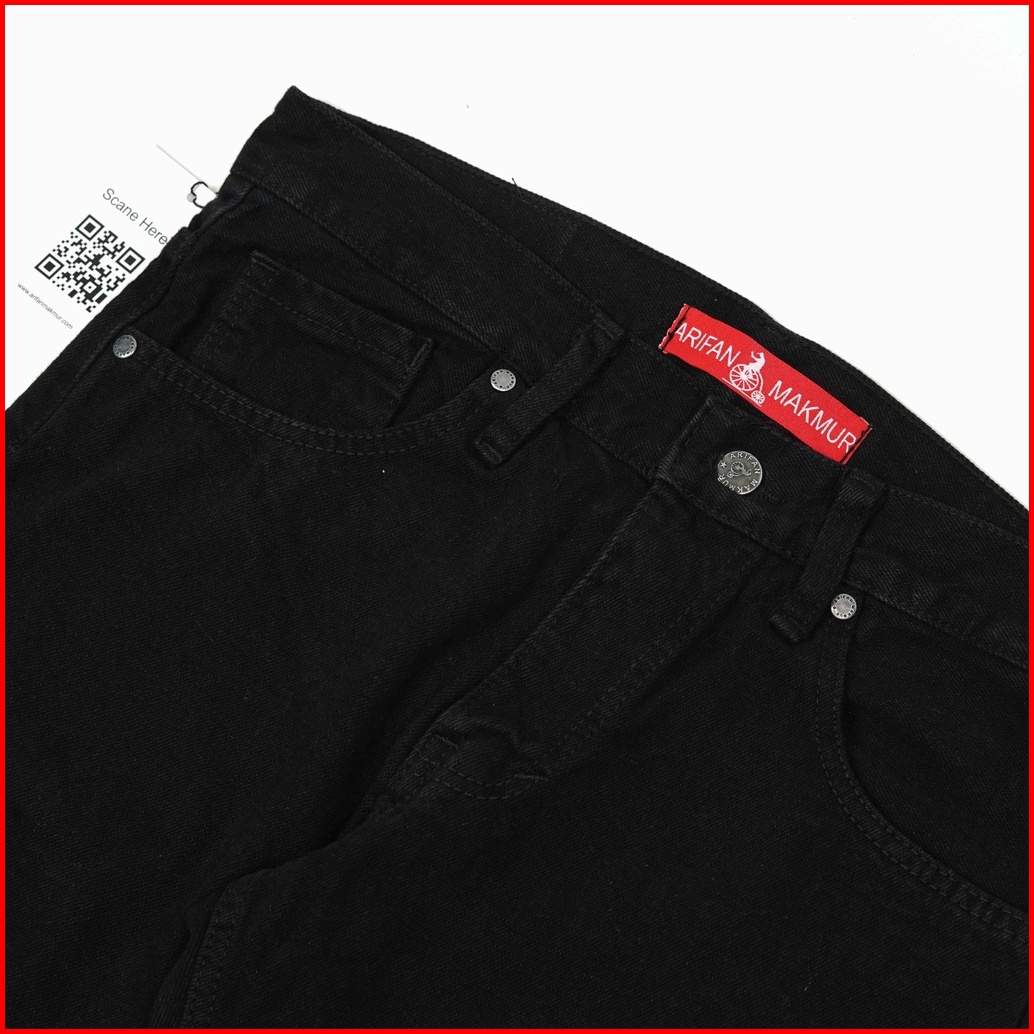 Arifan Celana Jeans Slim Fit Retro Black Hitam Polos