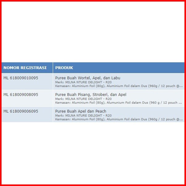 Milna Nature Delight Fruit Puree 80g Sari Buah Makanan Bayi