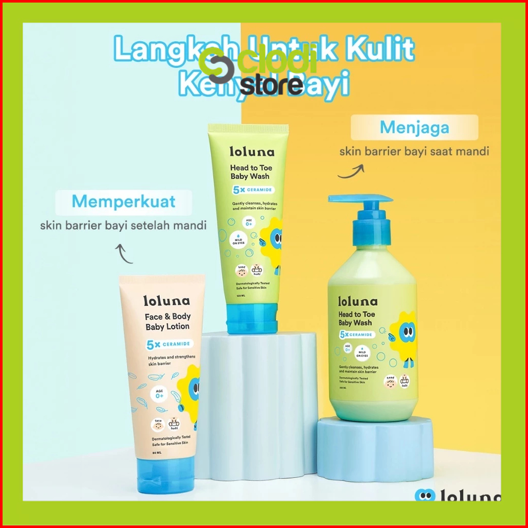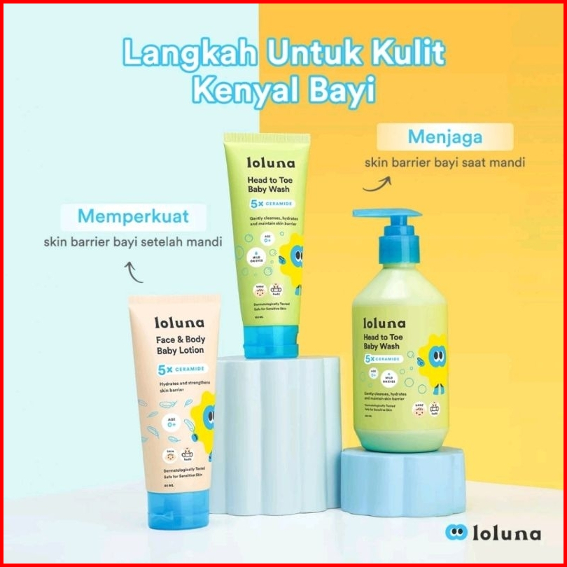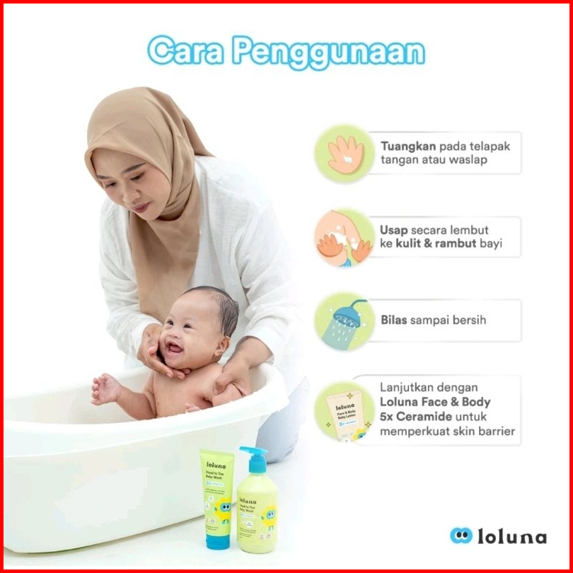 Loluna Head To Toe Baby Wash 100ml 300ml Face Body Lotion 80ml - Sabun Bayi Cream Wajah Baby
