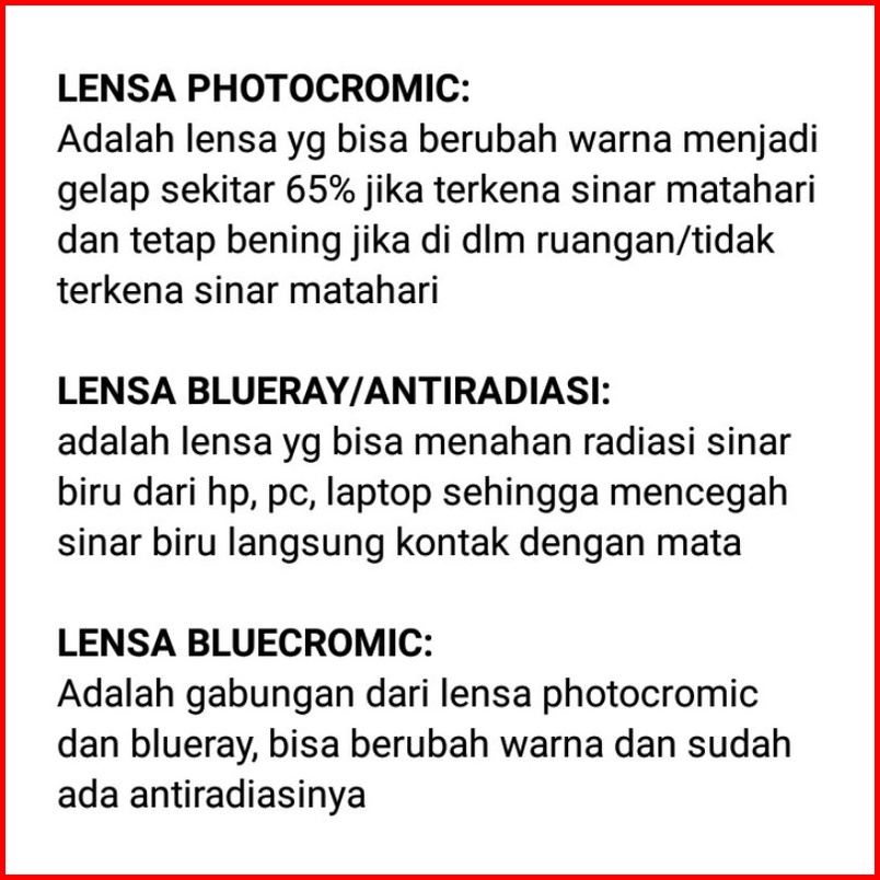 Photocromic Normal, Photocromic minus, Ptcromic+min+cylindr, Bluecromic normal, Bluecromic minus, Bluecric+min+cylndr