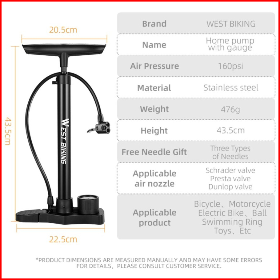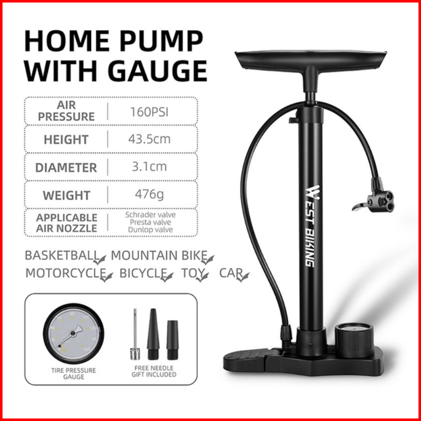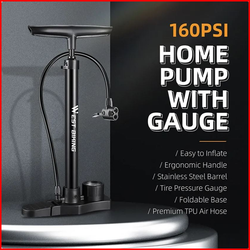 West Biking Bike Pump Pompa Angin Motor Sepeda 160psi Meter Yp0711142