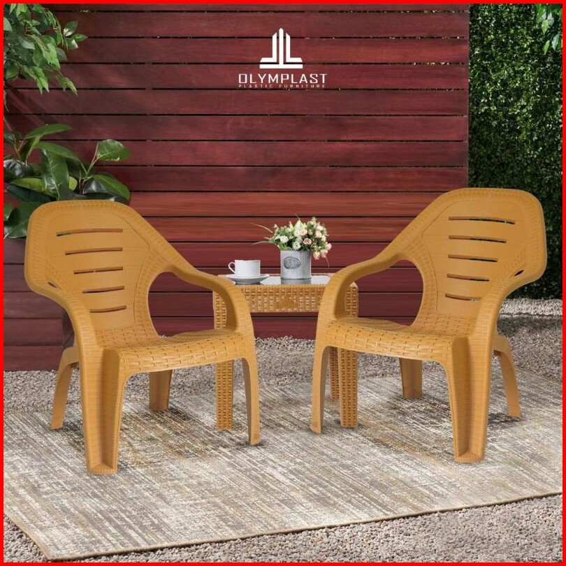 Ol 509 - Olymplast Kursi Santai Modern Bangku Sandar Plastik Rotan Anyam Anyaman Pendek Kursi Teras Plastik Kursi Santai