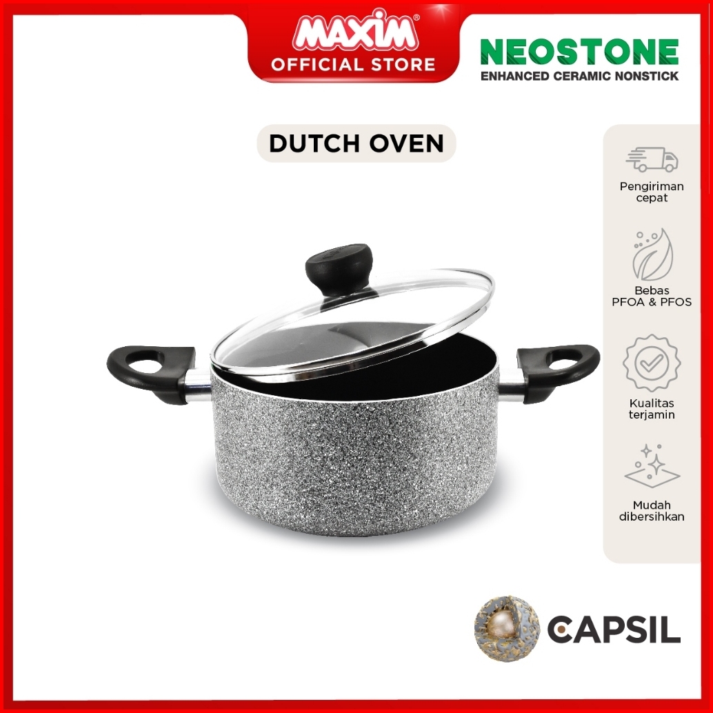 Maxim Neostone Dutch Oven 20 Cm Panci Casserole Ceramic Marble Tutup Kaca Anti Lengket Dutchoven 20cm
