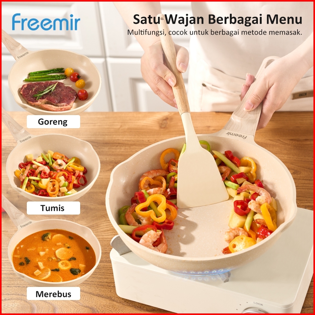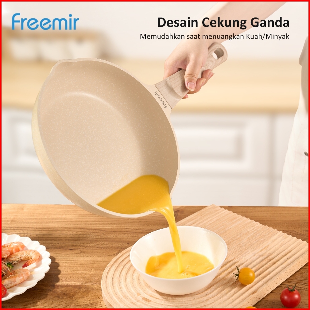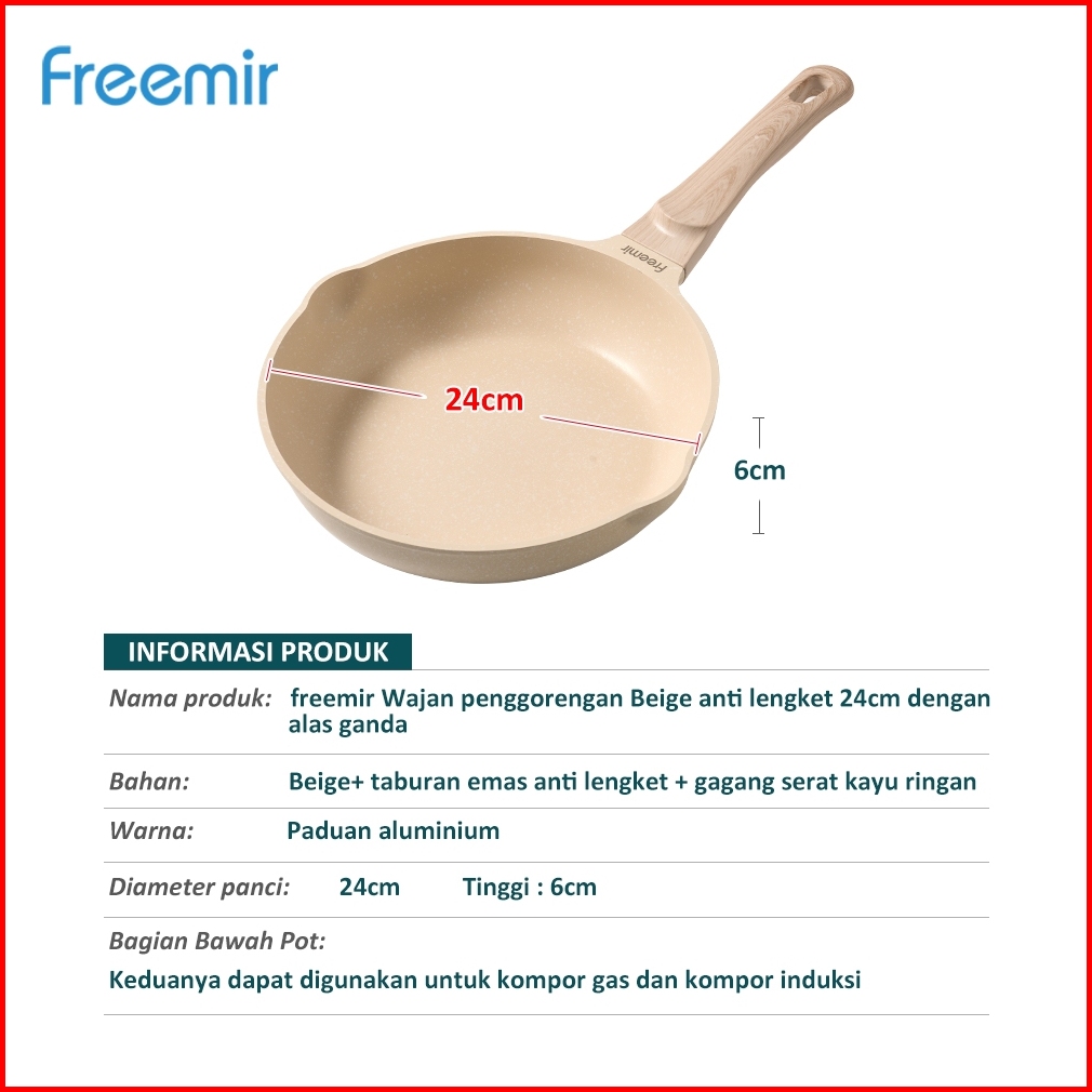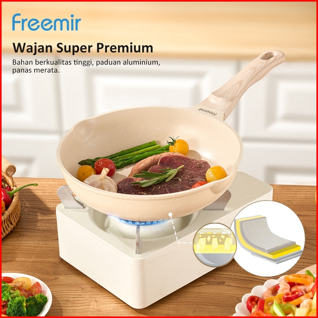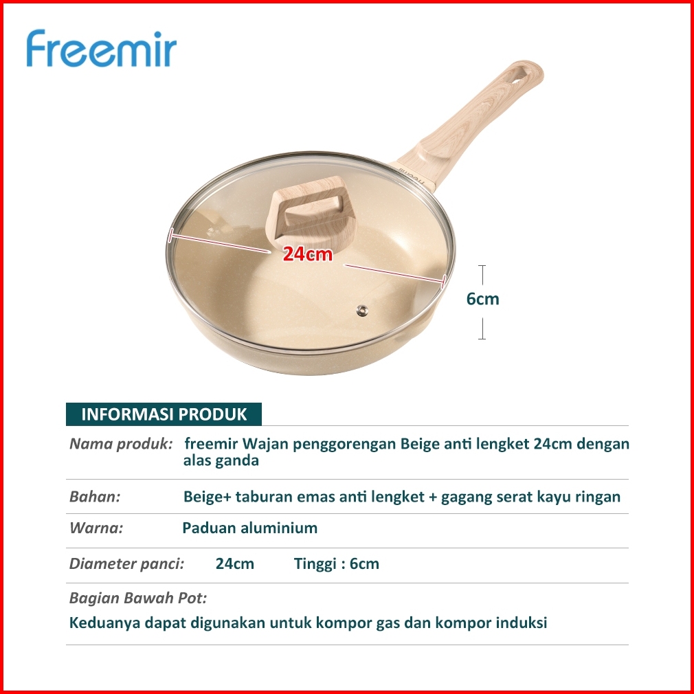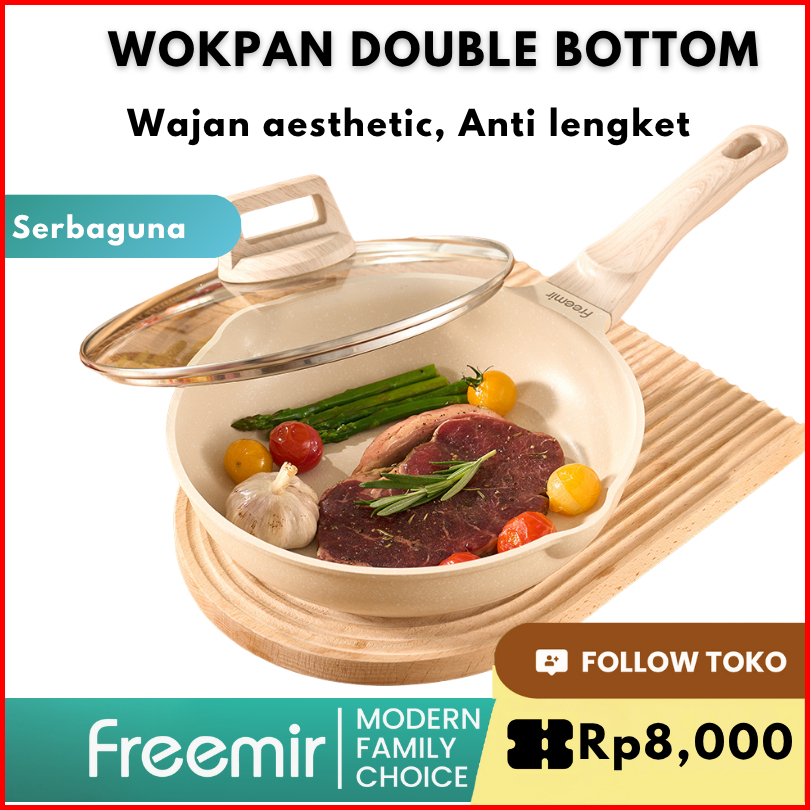 Wajan Panci 24 Cm Double Bottom Anti Lengket Lapisan Die-cast Tutup Kaca