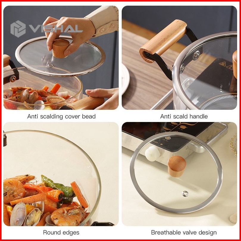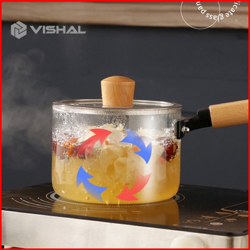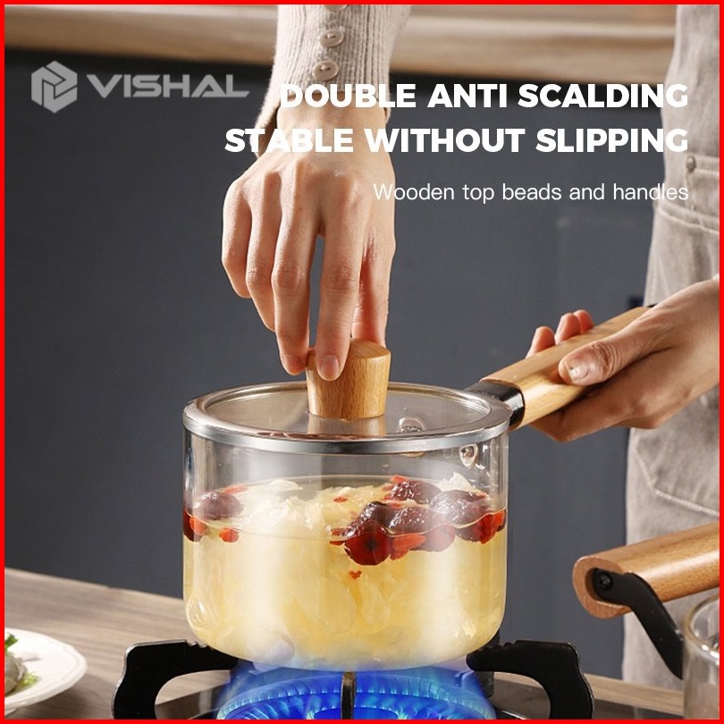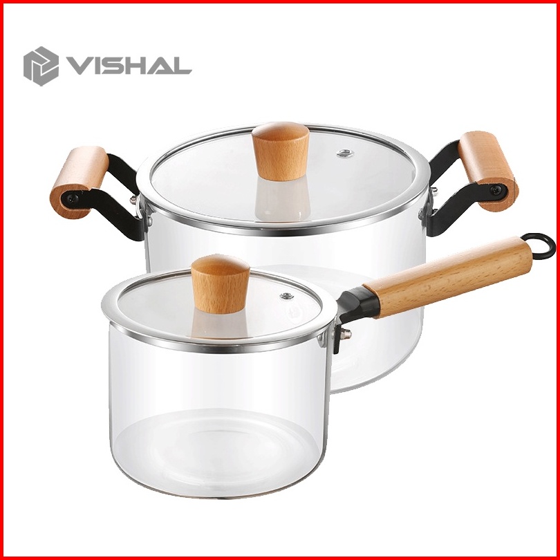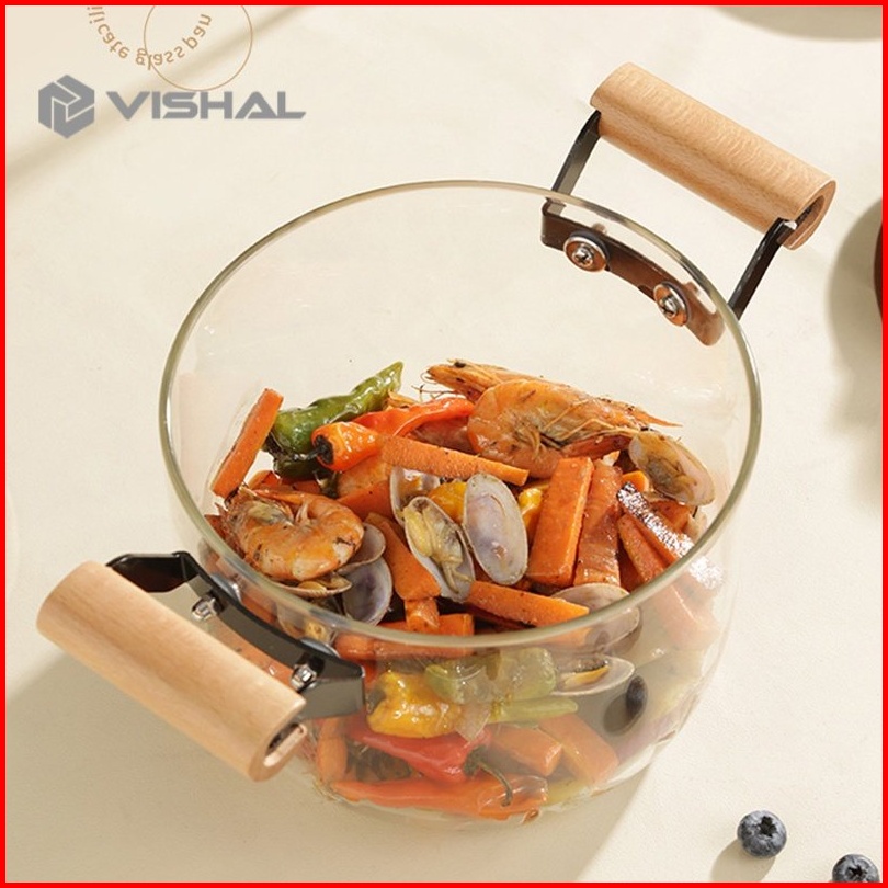 Vishal Pot Panci Masak Stewing Soup Pot Borosilicate Glass Dengan Pegangan Panci Kaca Transparant Anti Api Anti Panas Bo