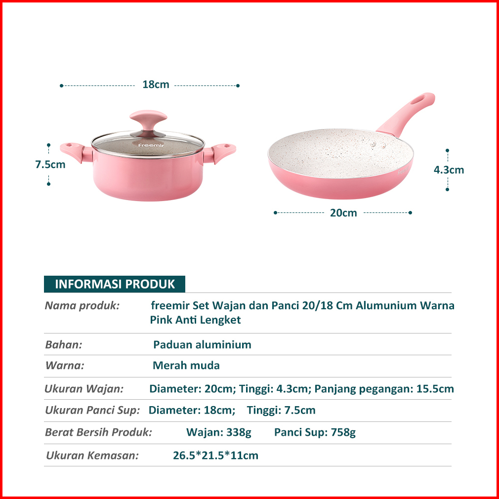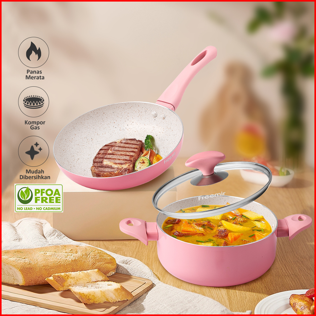Promo Freemir Set Wajan Penggorengan Granit Panci 20 18 Cm Anti Lengket Pfoa Free