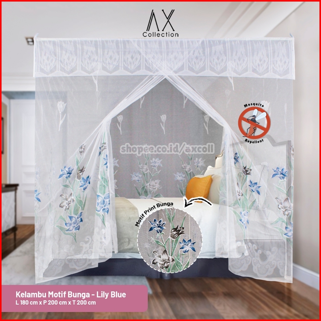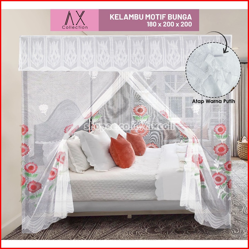 Kelambu Tidur Persegi Print Bunga Anti Nyamuk King Size No.1