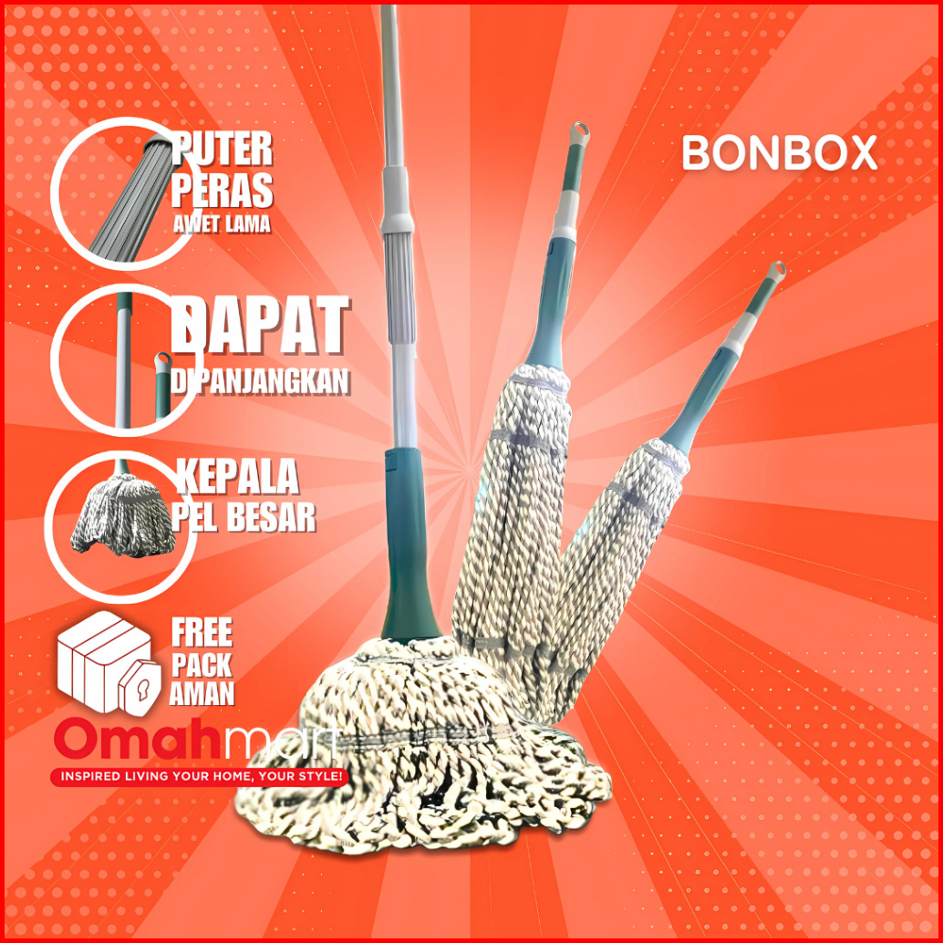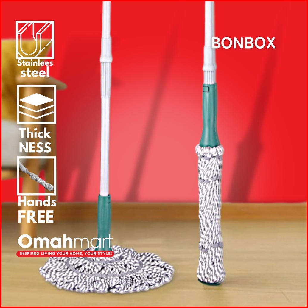 Bonbox Alat Pel Lantai Twist Mop Tarik Peras Otomatis Praktis Gagang Panjang Stainless Steel