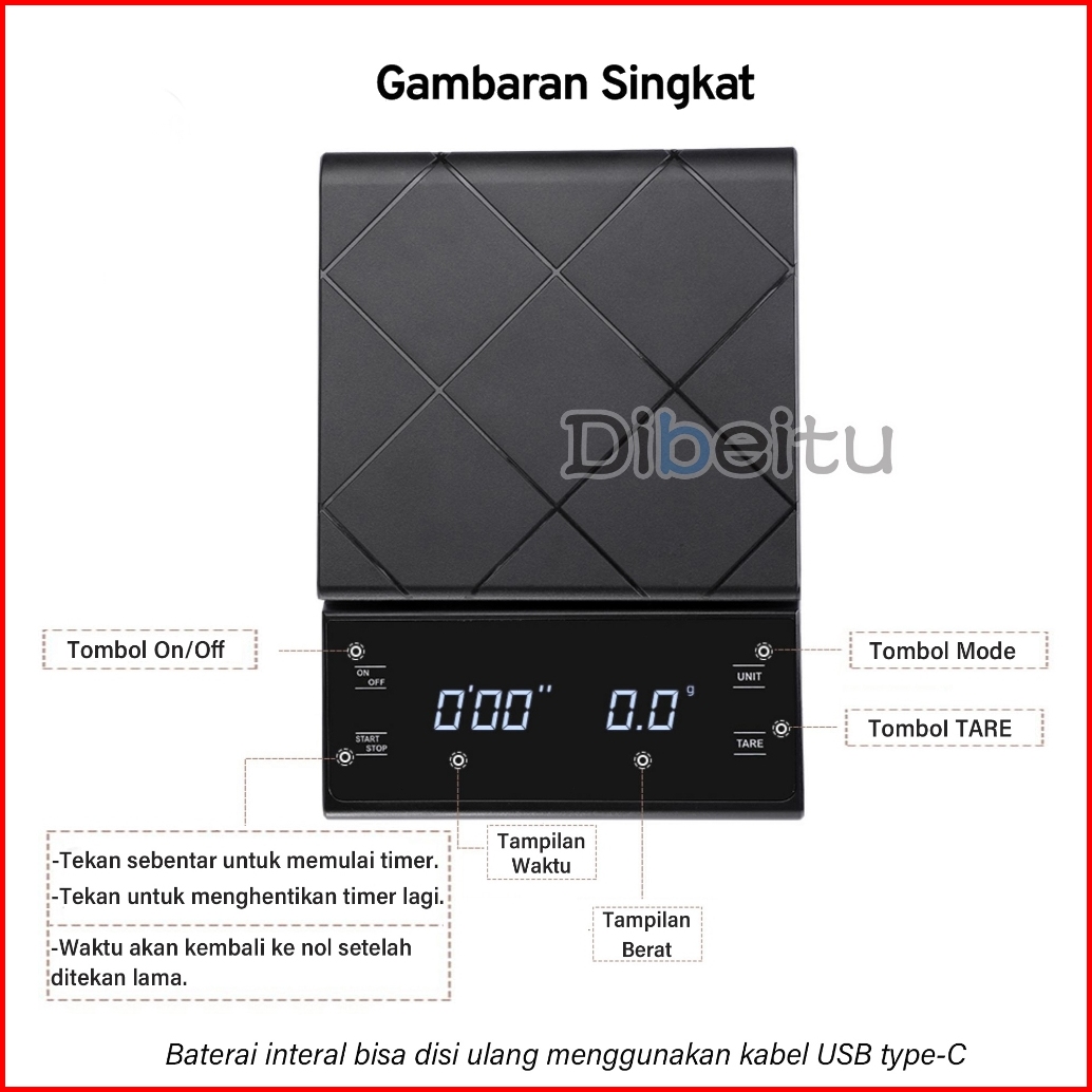 Dibeitu - Timbangan Kopi 5kg 0.1gr Digital Timer Drip Coffee Scale Premium