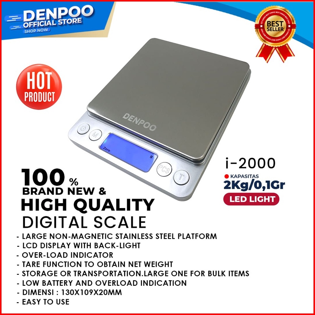 Denpoo Timbangan Dapur Digital I2000 2kg 0 1 Gr