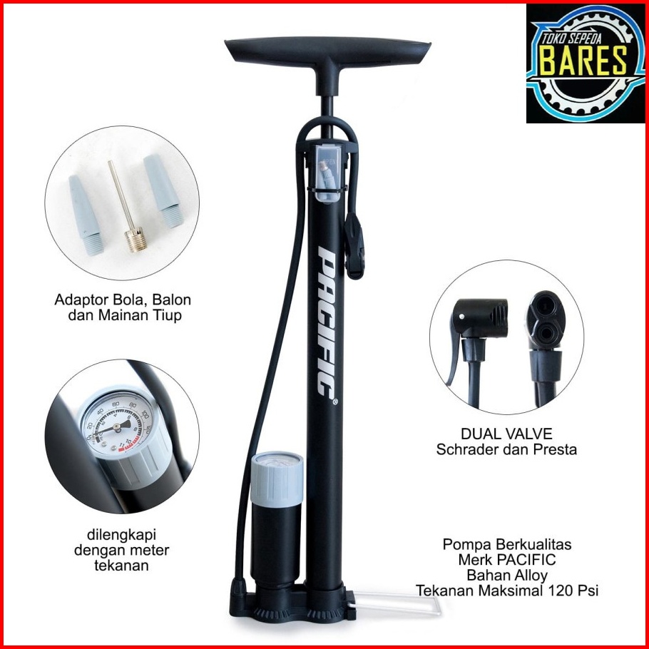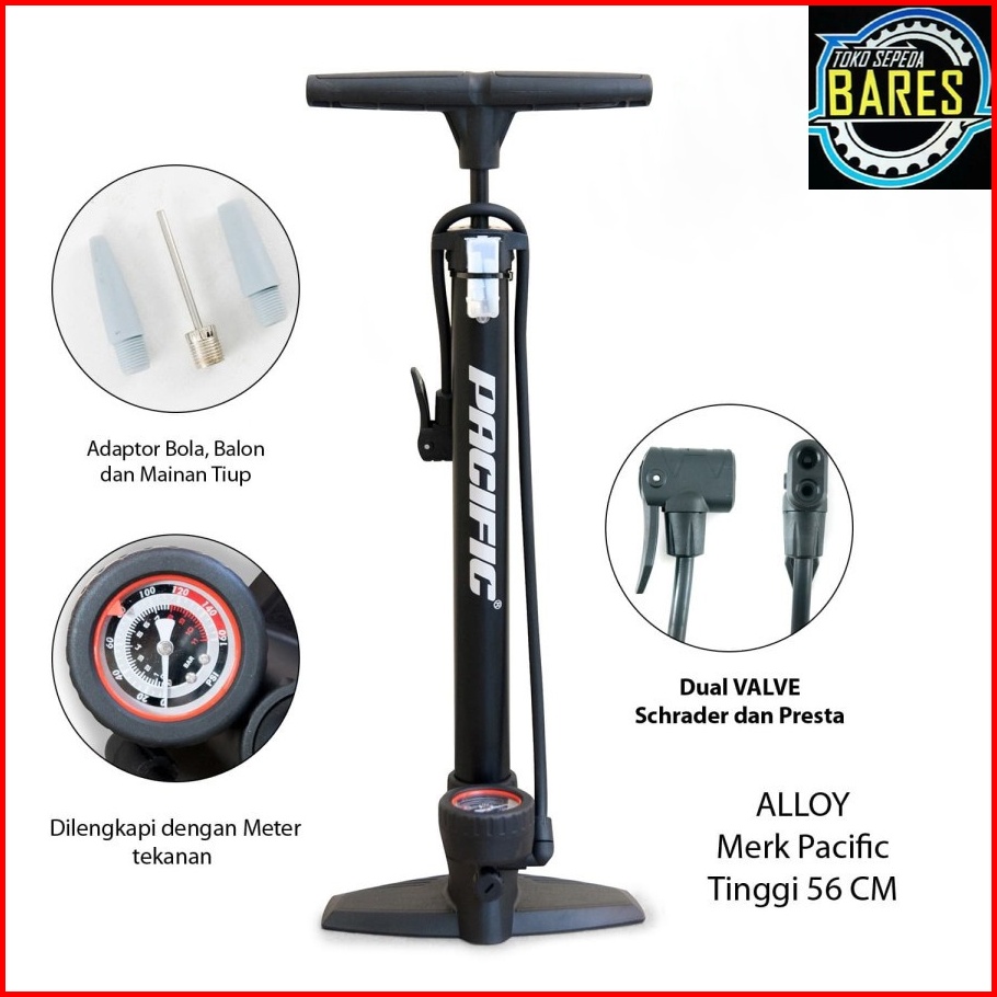 Pompa Angin Sepeda Pacific Sp-j806 Sp-j807 Floor Pump With Gauge