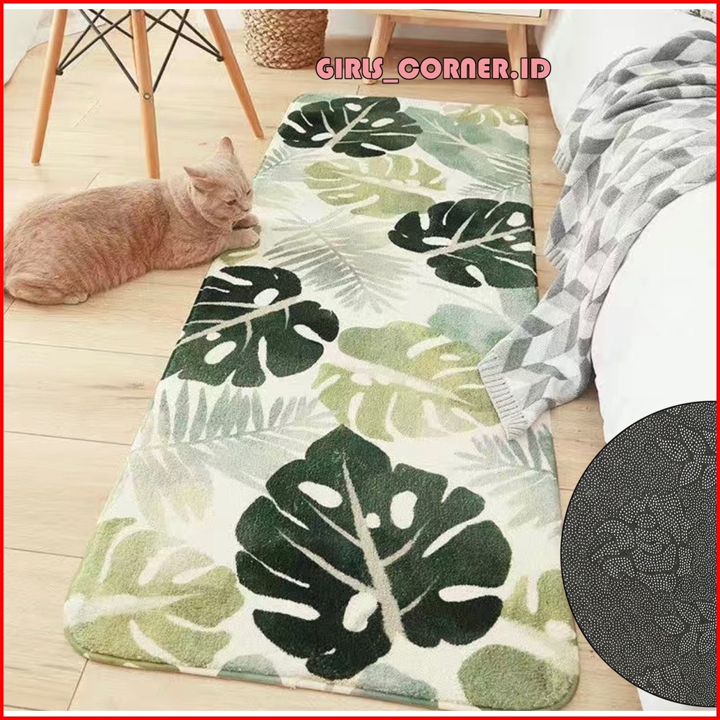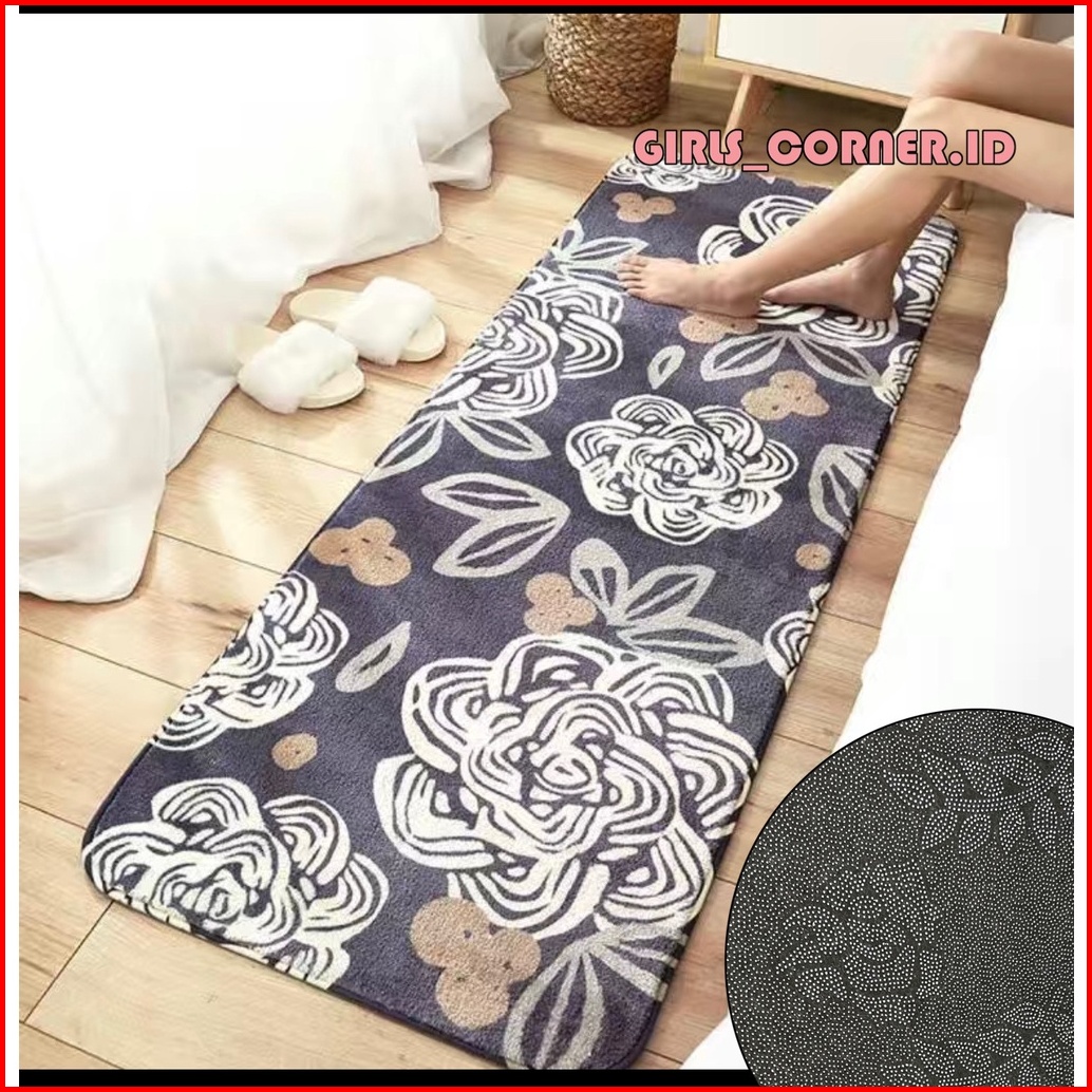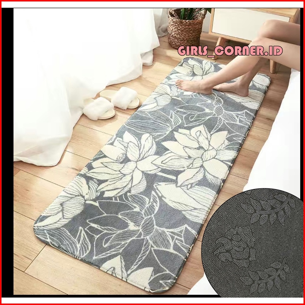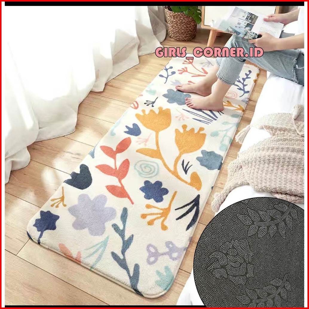 Keset Panjang Modern Bulu Halus Minimalis Lembut40x120 Anti Slip Motif Menarik Flower Bunga