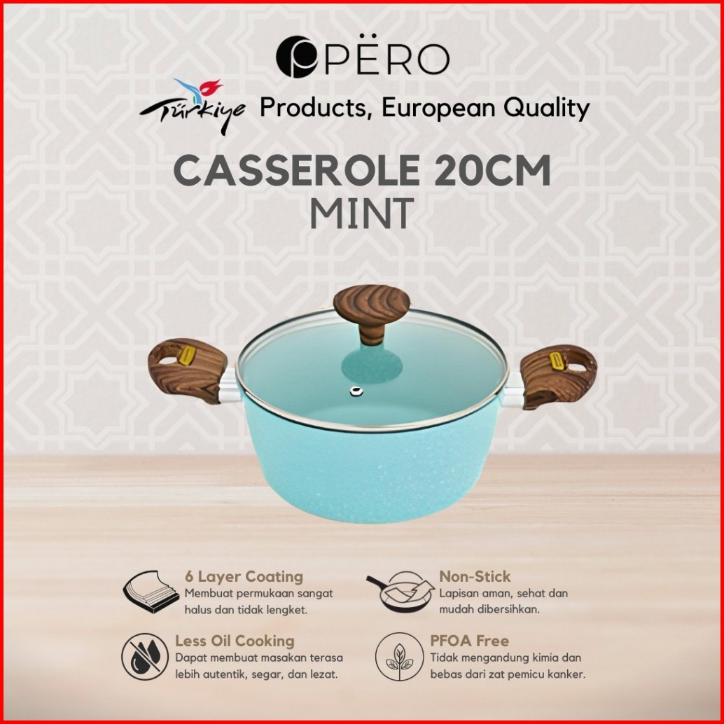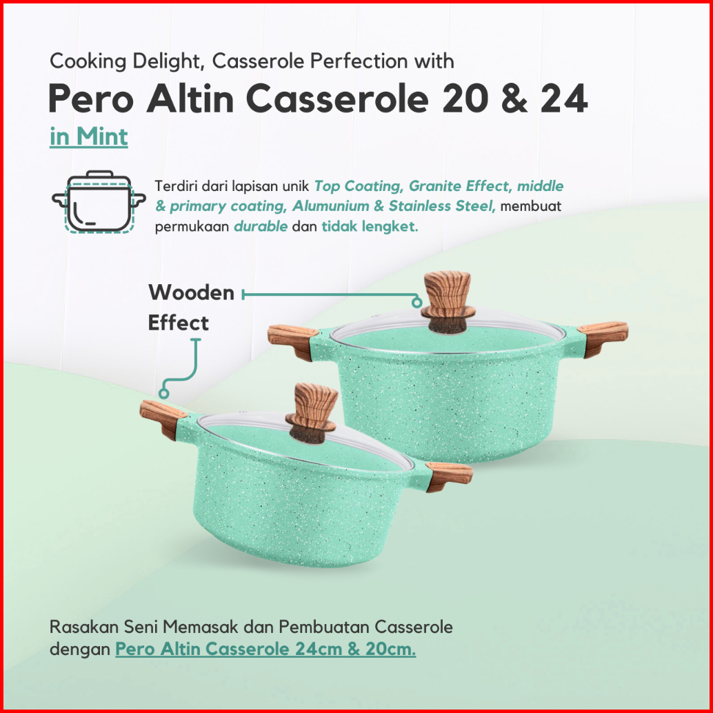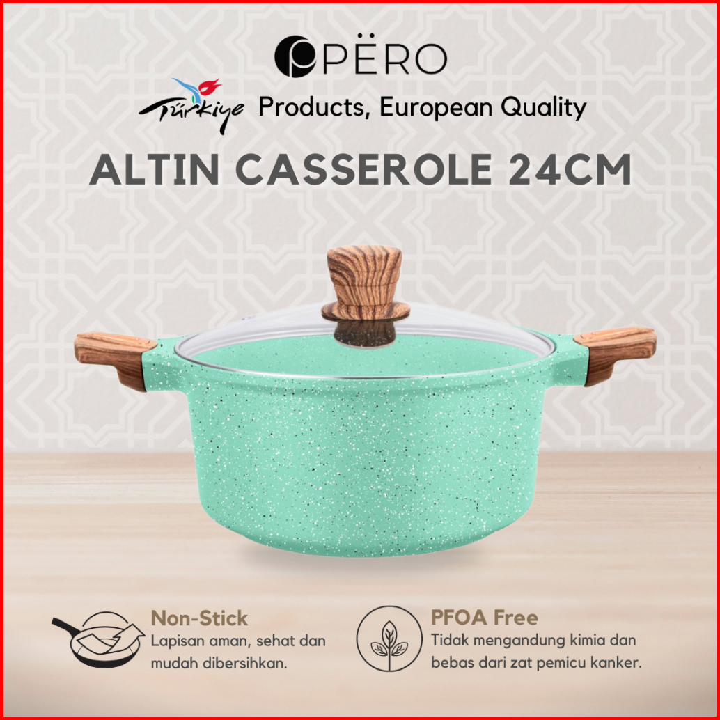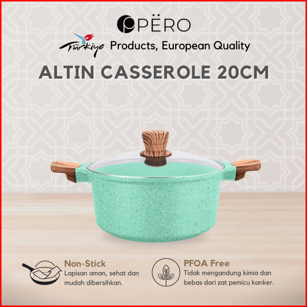 Pero Altin Biogranite Casserole With Lid 20cm 24cm Panci Dengan Tutup Kaca Biogranite Tebal Ukuran 20cm 24cm Anti Lengke