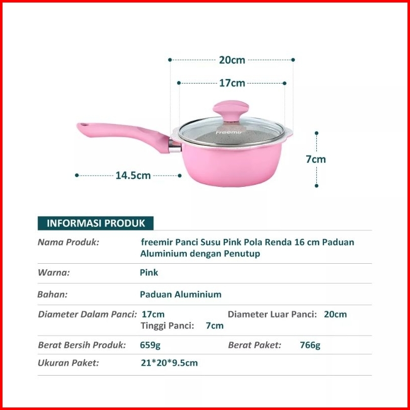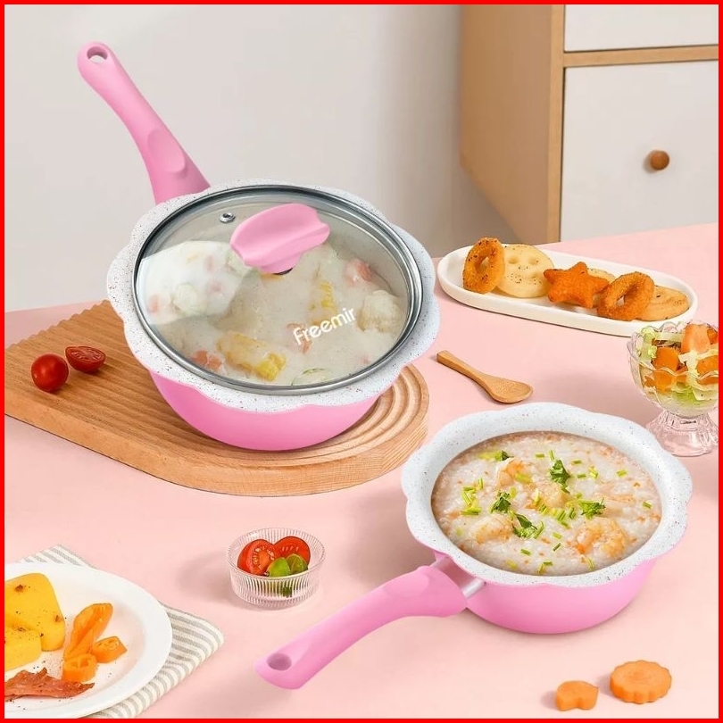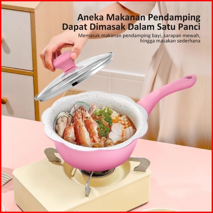 Freemir Panci Mpasi Susu 16cm Anti Lengket Tutup Kaca Bpa Pfoa Free Multifungsi Rebus Mie Bubur