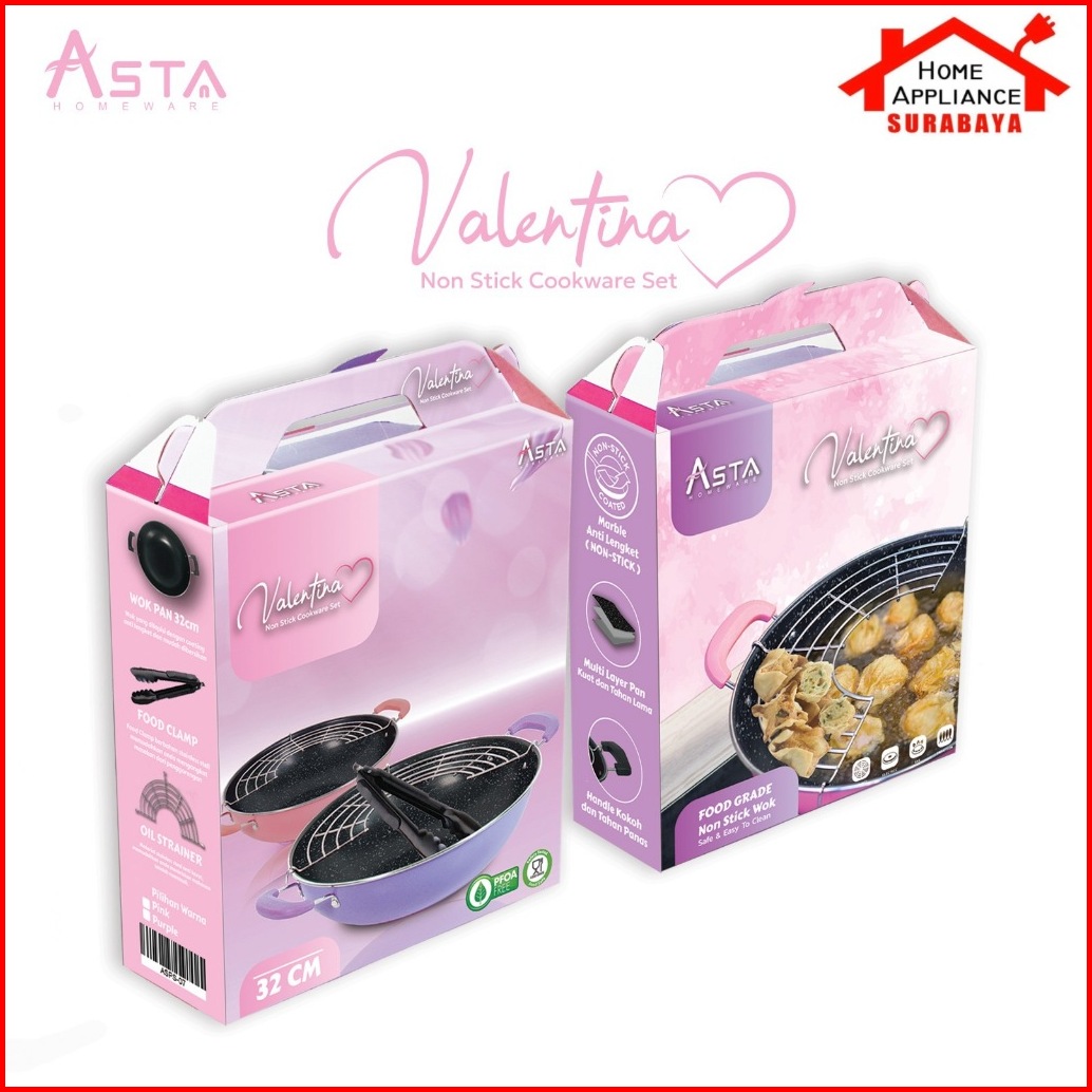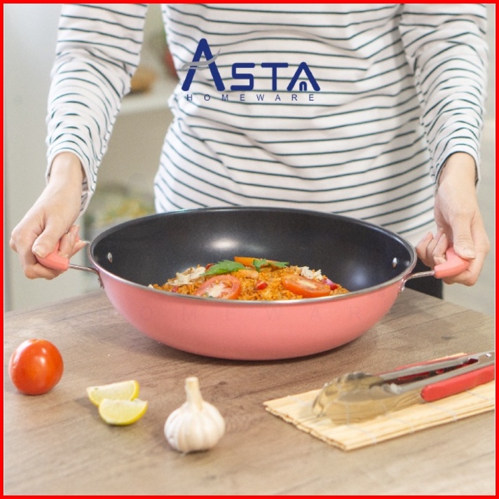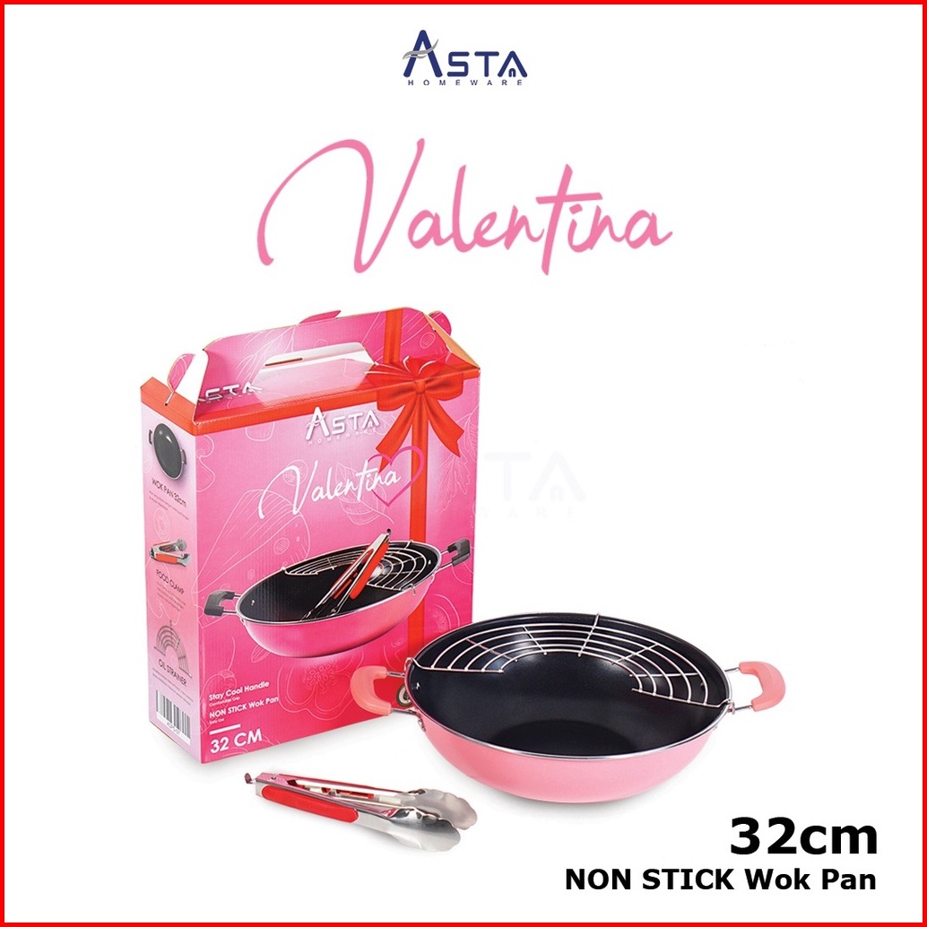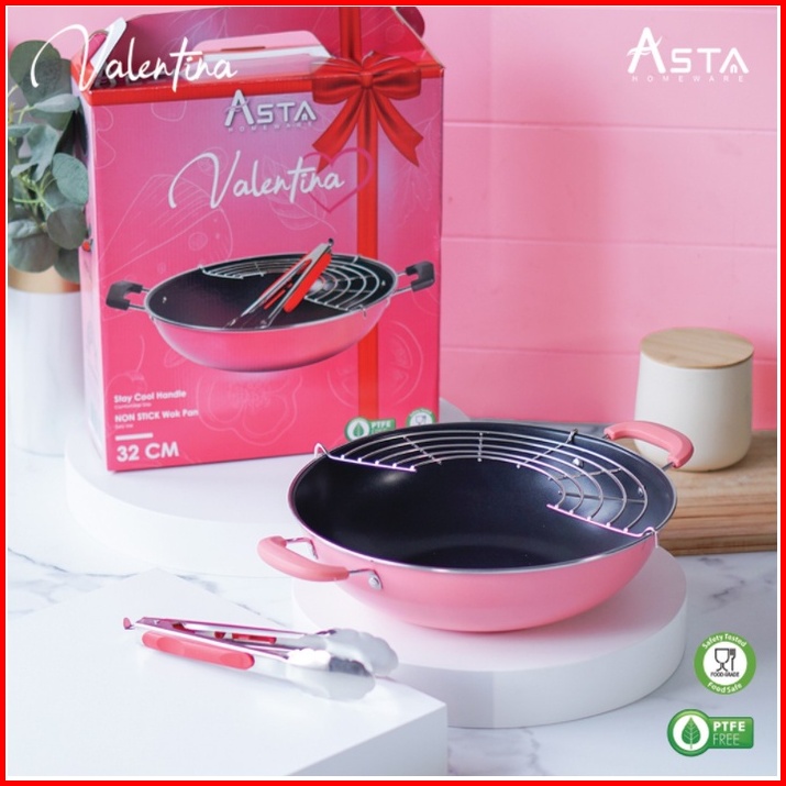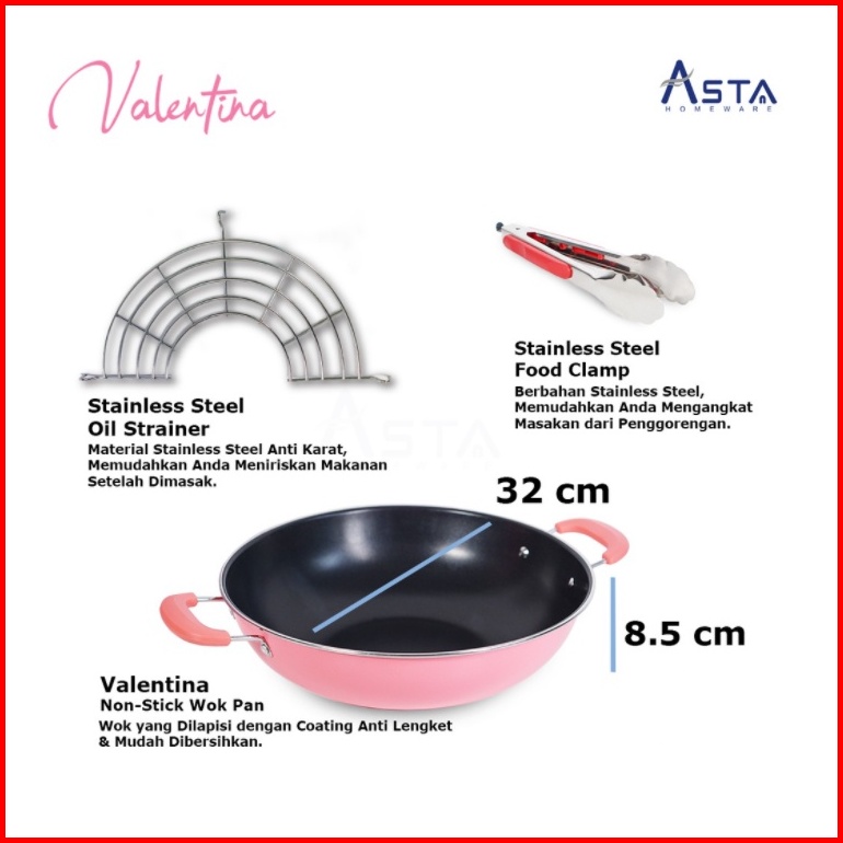 Panci Wajan - Wok Pan Penggorengan 32 Cm Anti Lengket Tirisan Minyak - Cookware Set 3 Pcs Asta Valentina