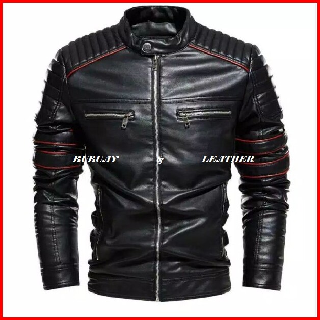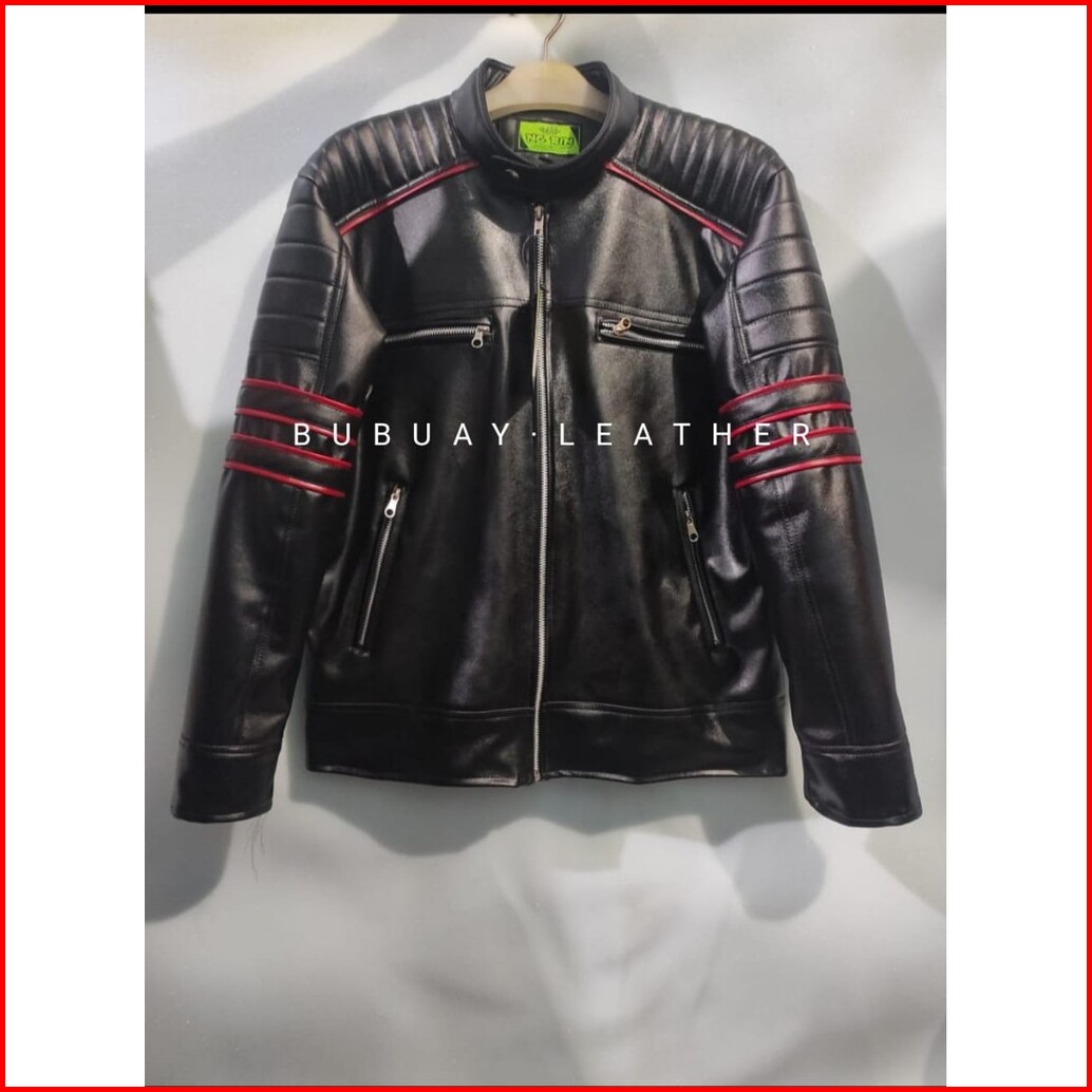 Jaket Kulit Pria Racing Strip Merah Jake Kulit Original Jaket Motor Jaket Semi Kulit