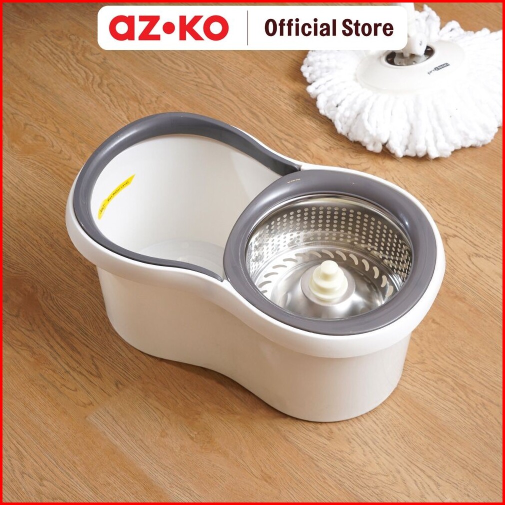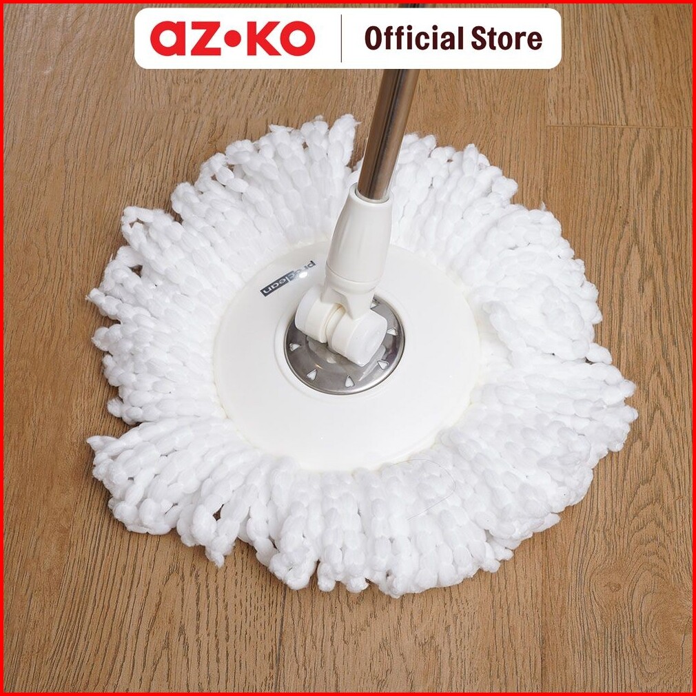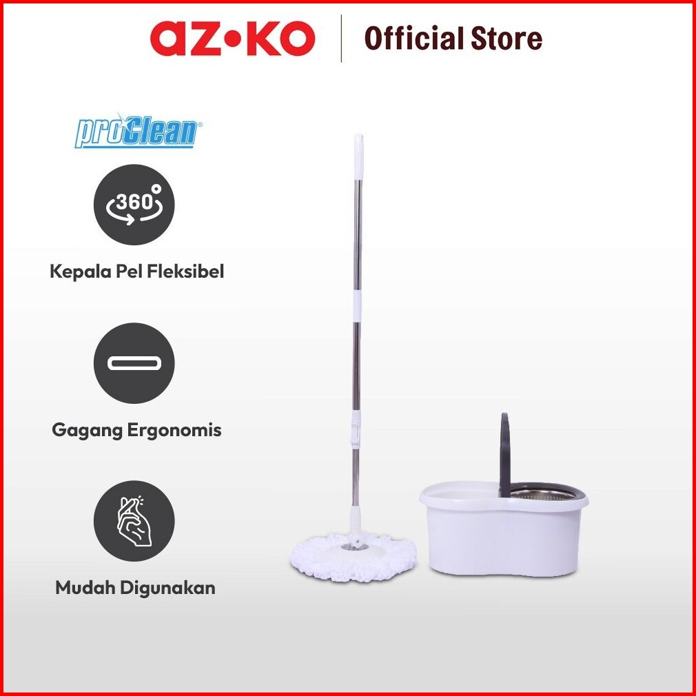 Azko Proclean Set Alat Pel Putar Dengan Ember Peras - Putih Kain Pel Spinning Mop With Bucket Pembersih Lantai Alat Kebe